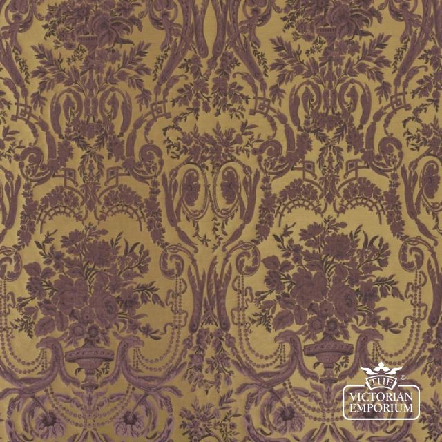 A stunning damask with dramatic metallic flecks on a silk linen jacquard ground. This beautiful design is inspired by the grandeur of silk hangings found in the Green Drawing Room at Buckingham Palace and would be perfect for wonderfully elegant drapery, blinds, cushions and bedcovers. Available in four shades.