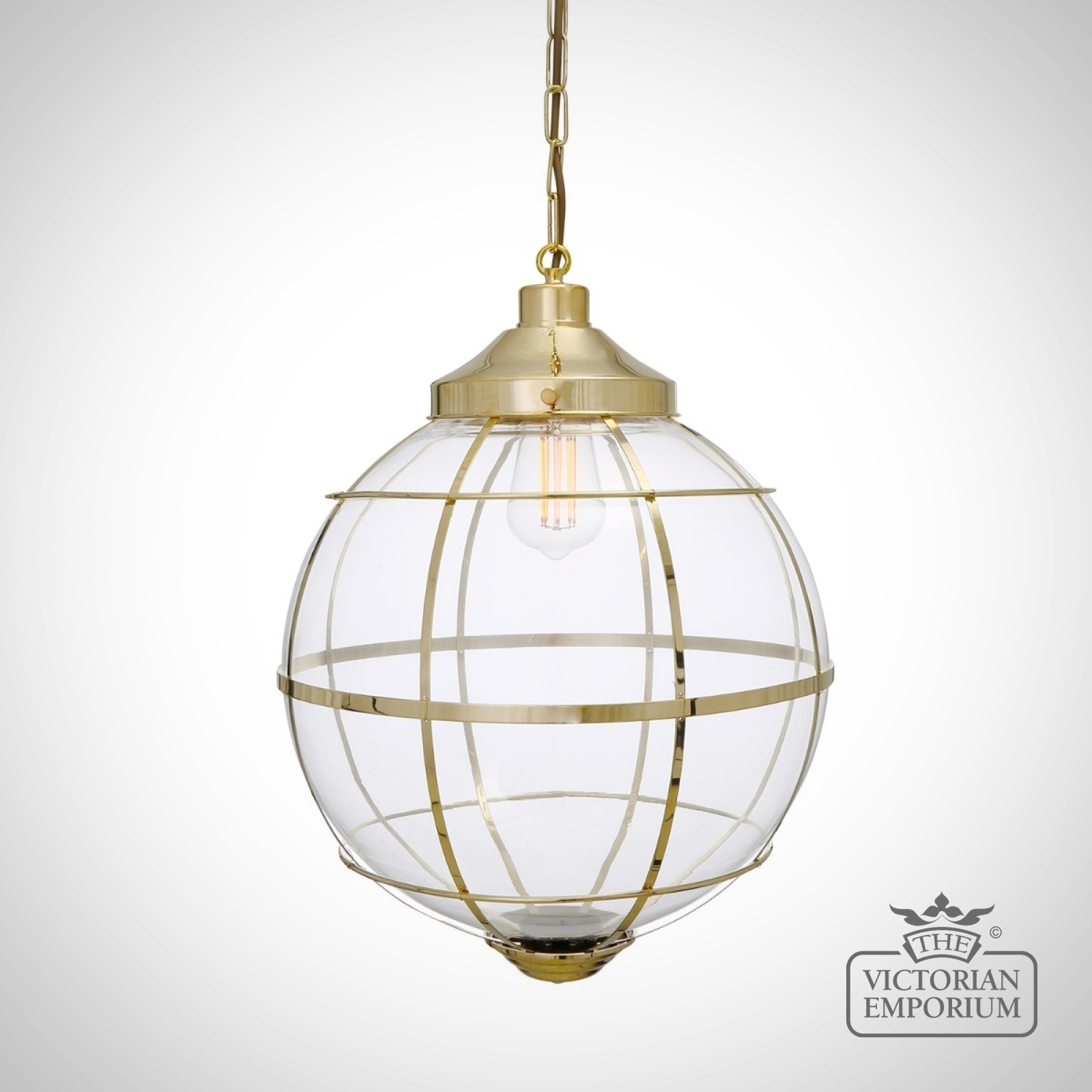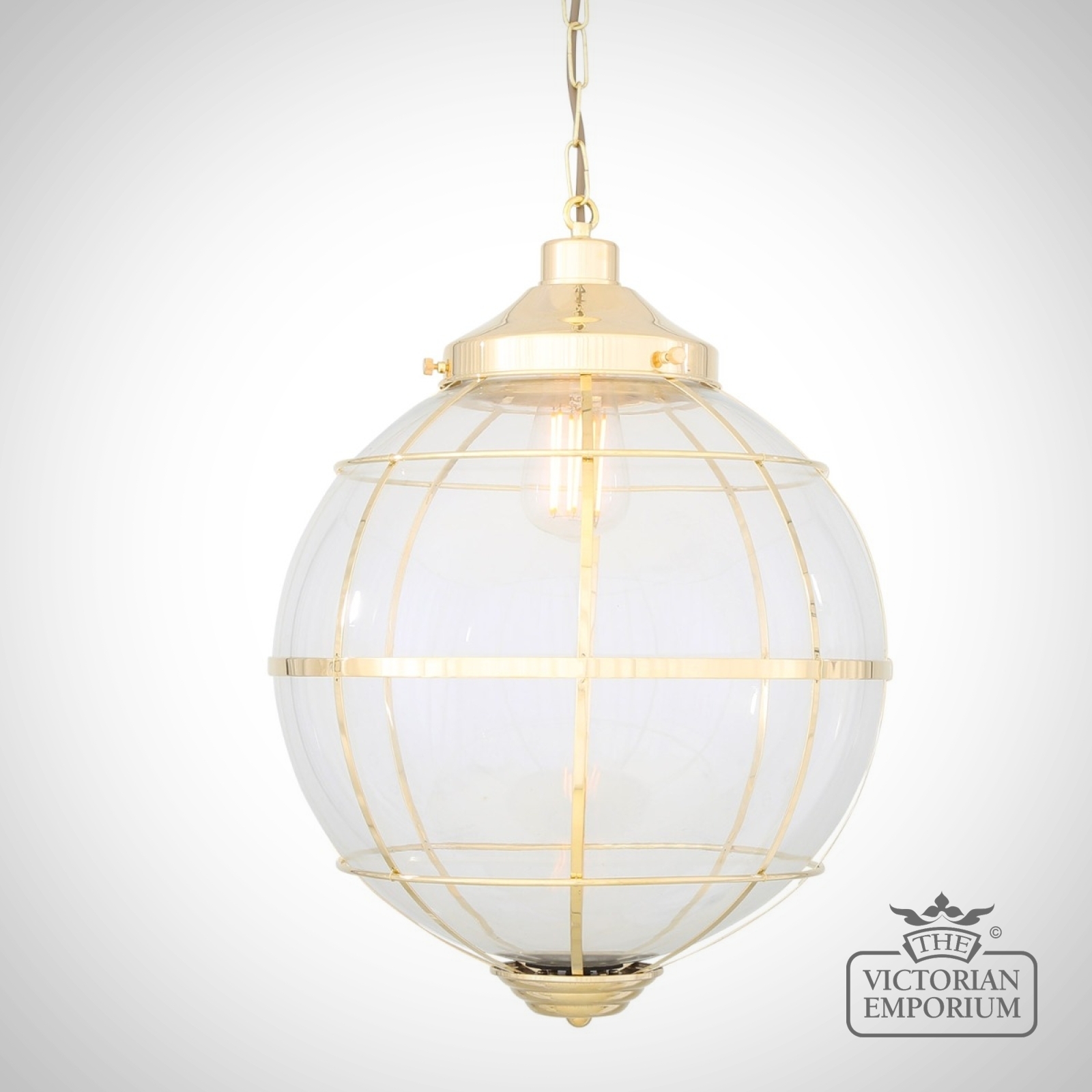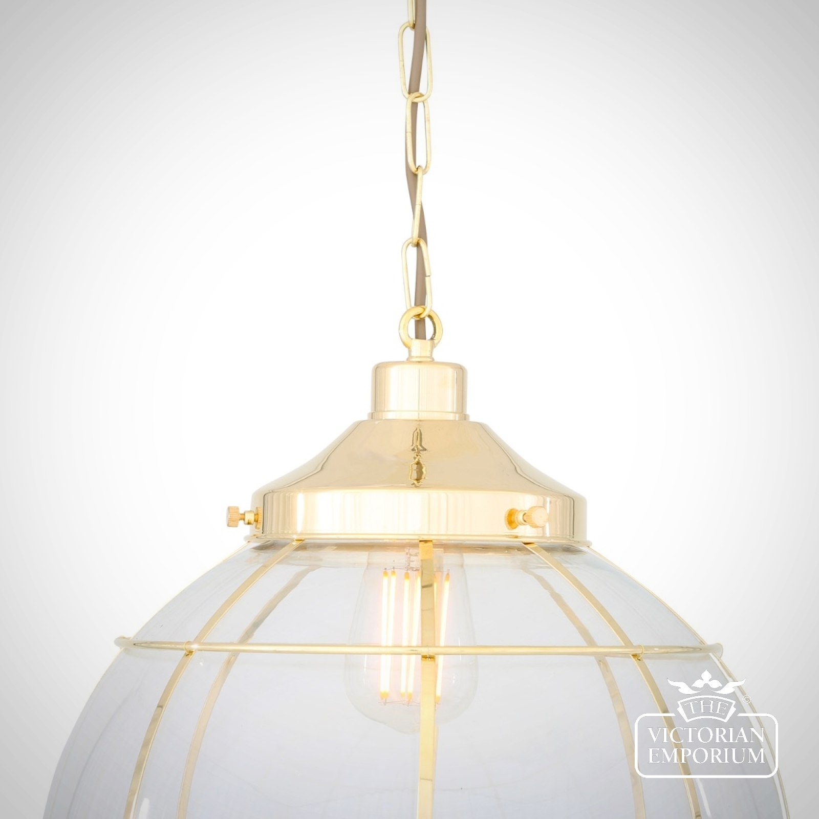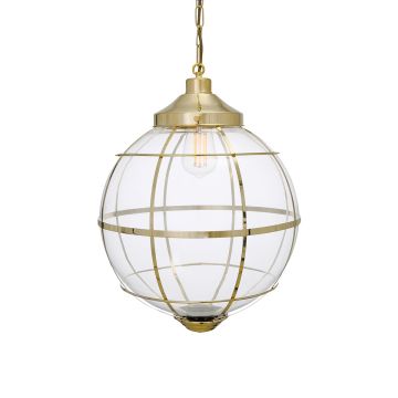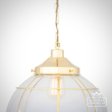 The Henlow pendant light features a stunning brass cage around a glass globe, a really decorative design to complement an array of interiors.