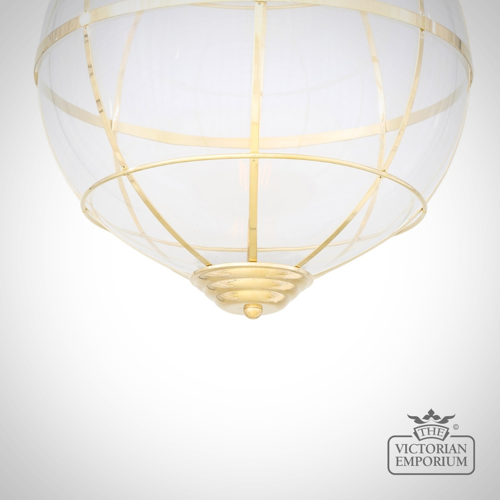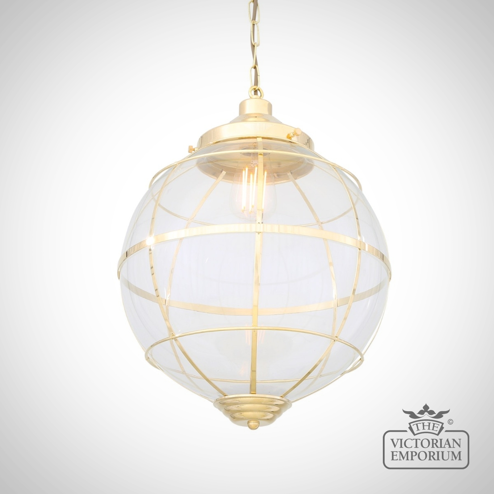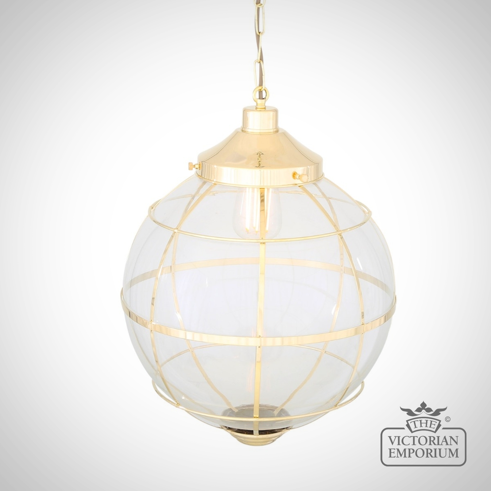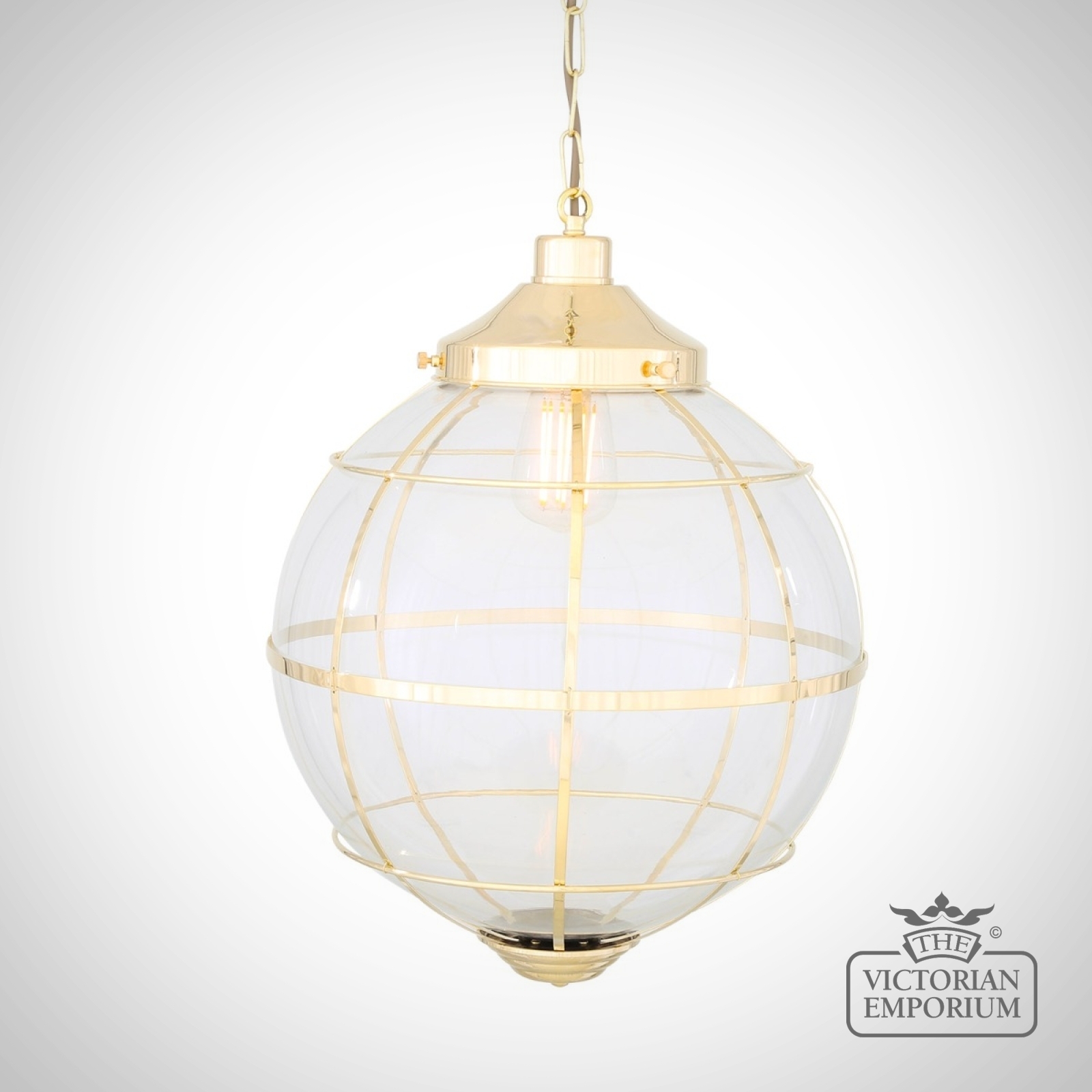 The Henlow pendant light features a stunning brass cage around a glass globe, a really decorative design to complement an array of interiors.