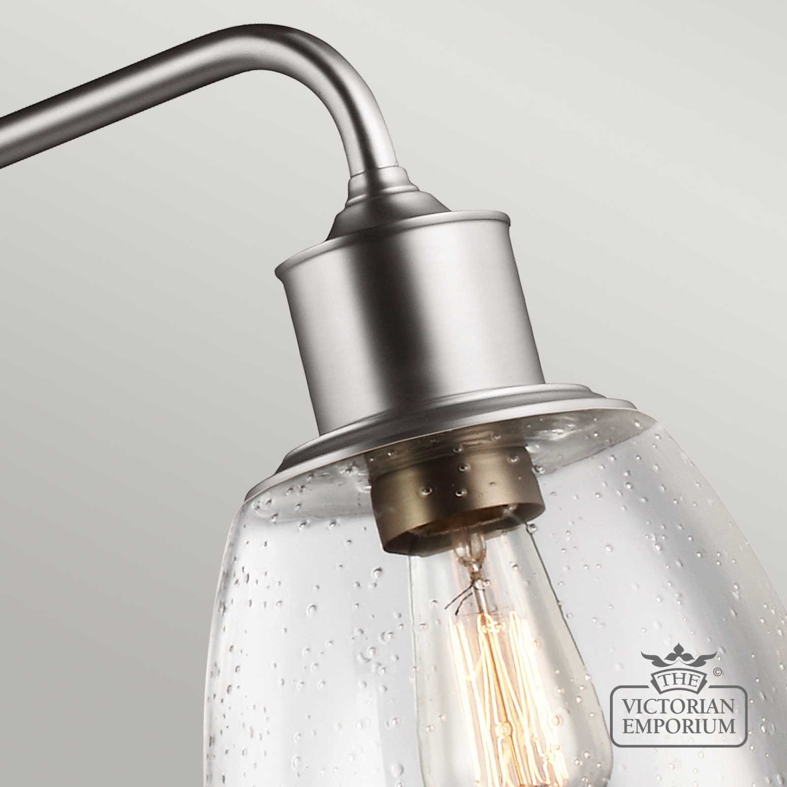 This is an industrial inspired island pendant with a top pivot and seeded glass. This collection is available in aged brass and satin nickel