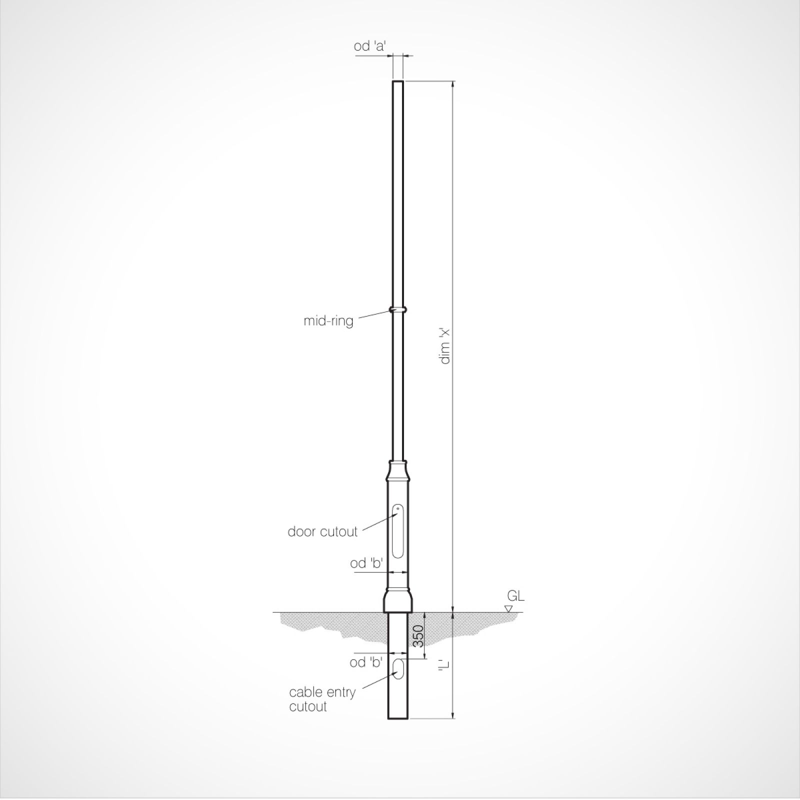 Stepped tubular steel column with cast embellishments