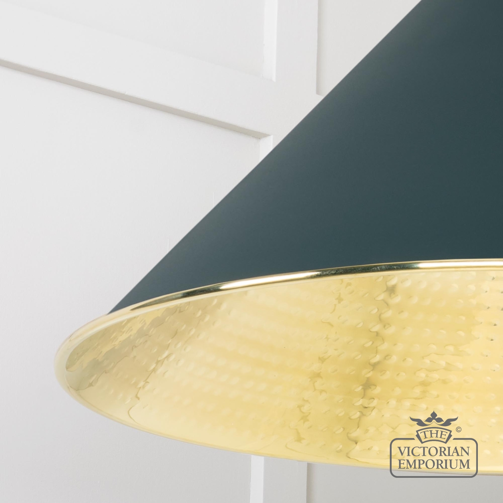 Hockliffe pendant light in Dingle and Hammered Brass