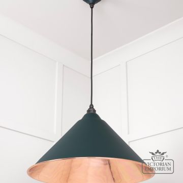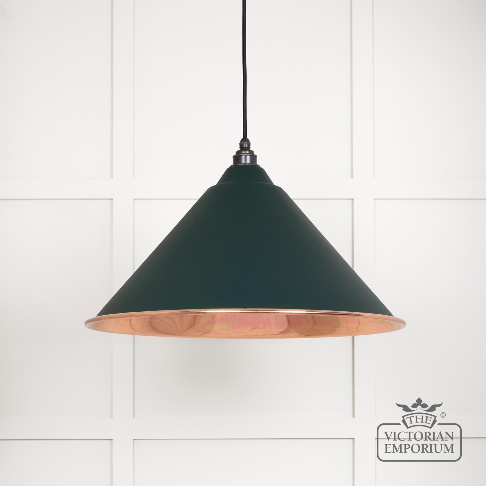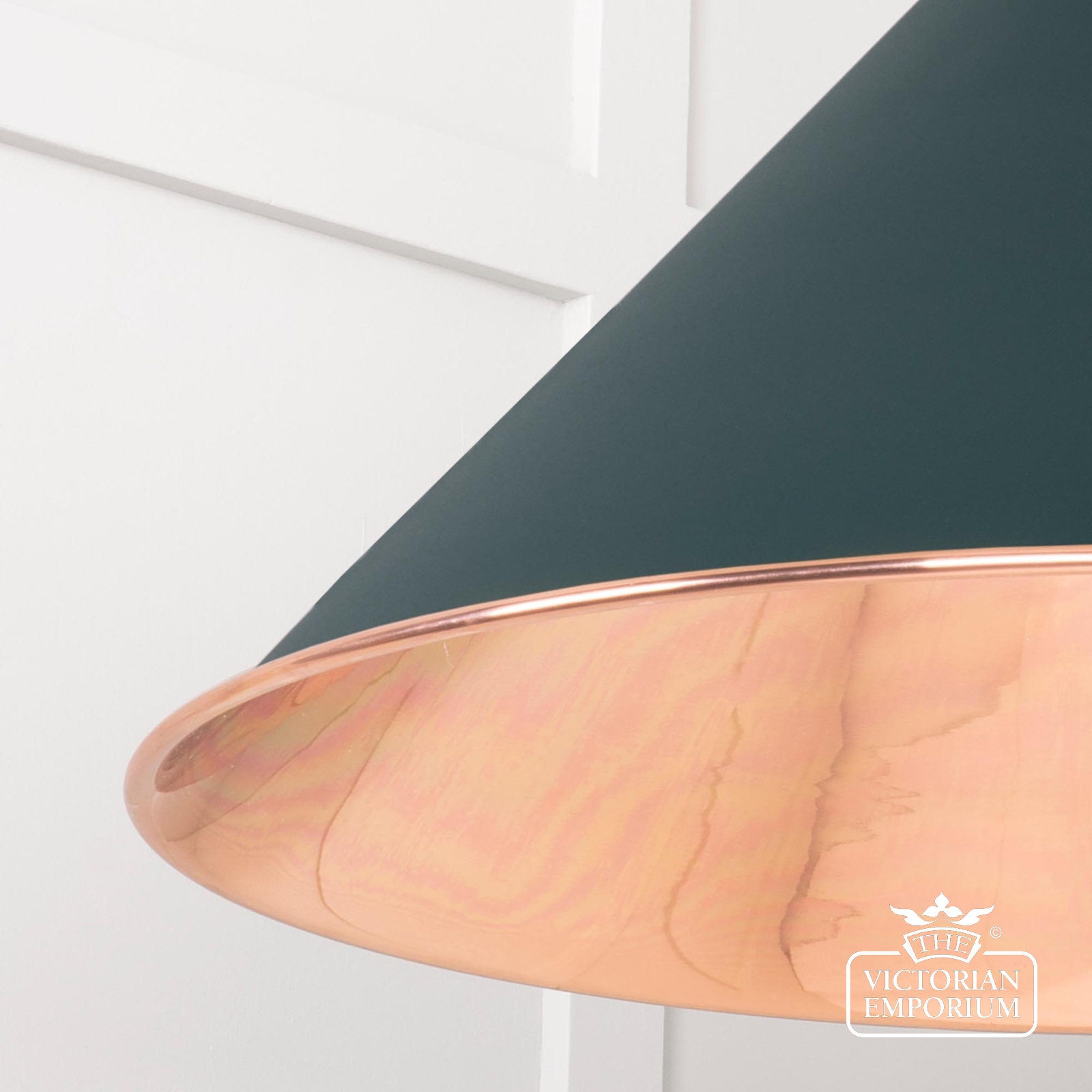The Hockliffe’s conical shape creates a more modern feel in traditional copper with a Dingle exterior. It can be hung as a centrepiece or grouped to create a statement