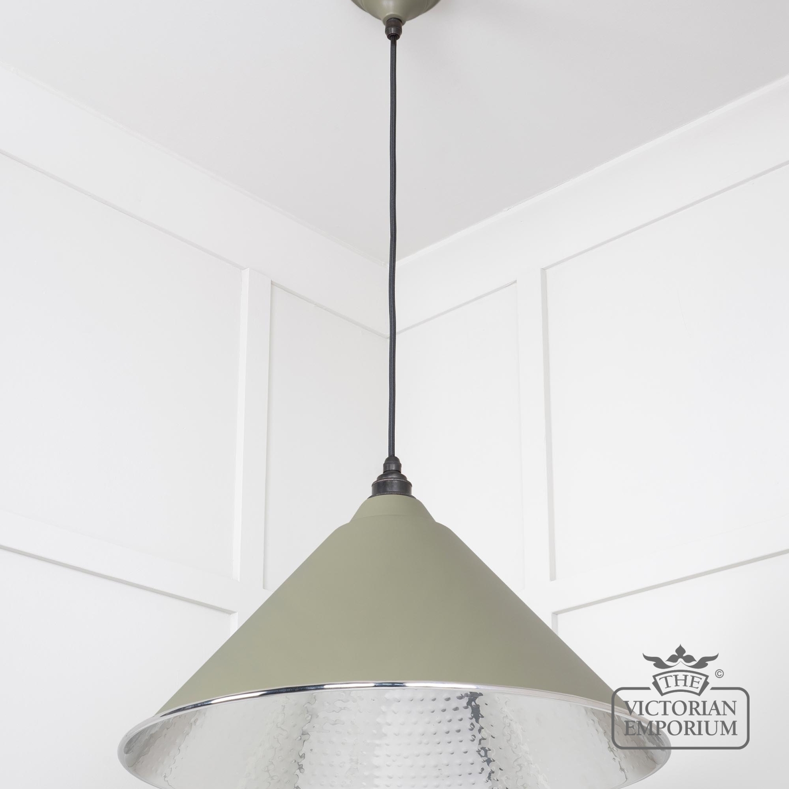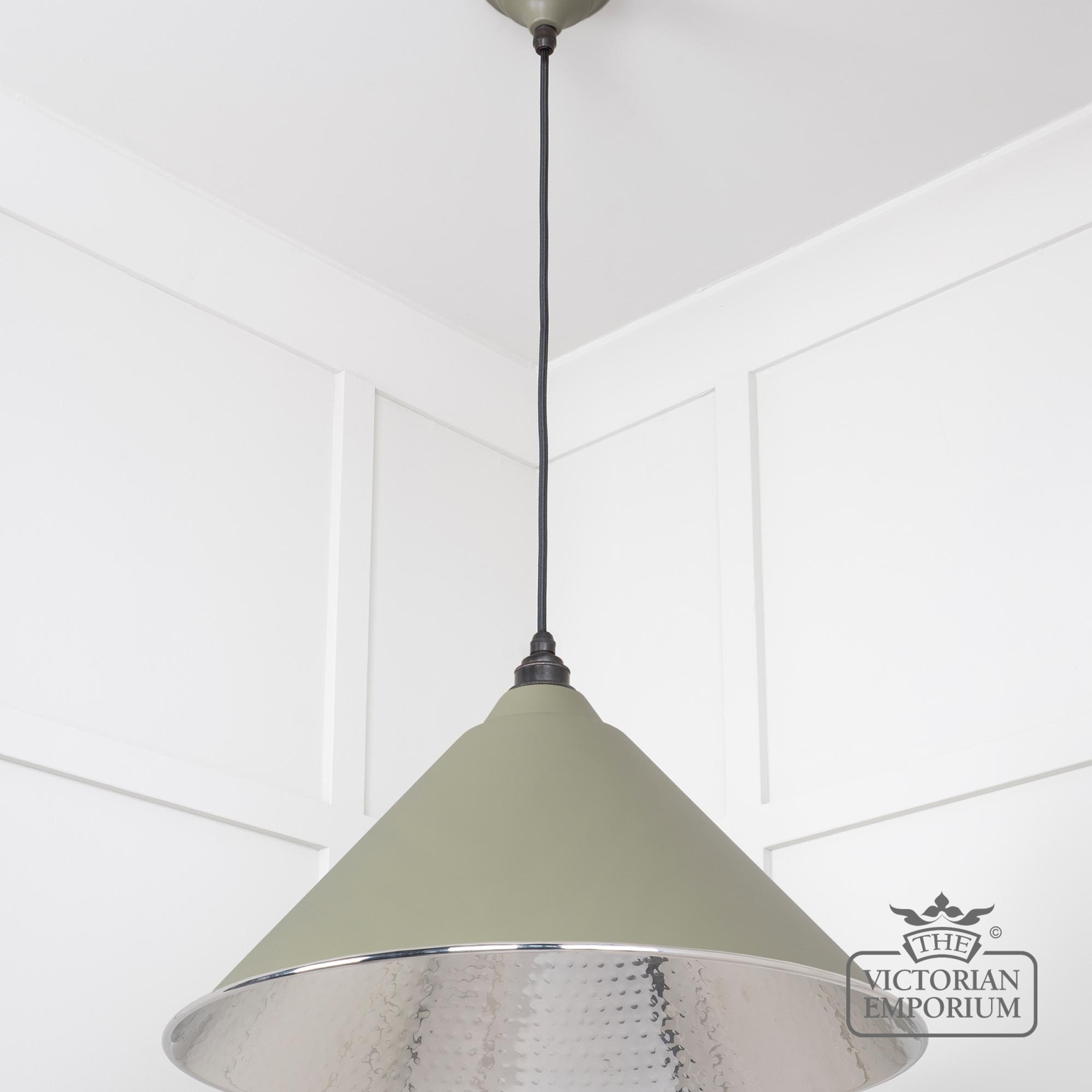 Hockliffe Pendant light in Hammered Nickel and Tump Exterior