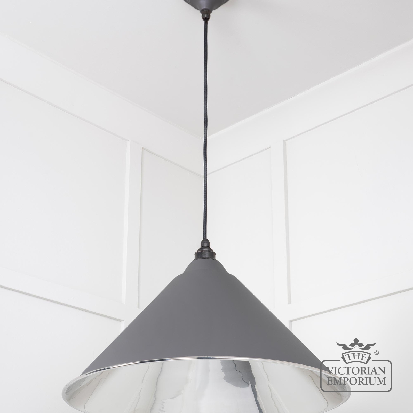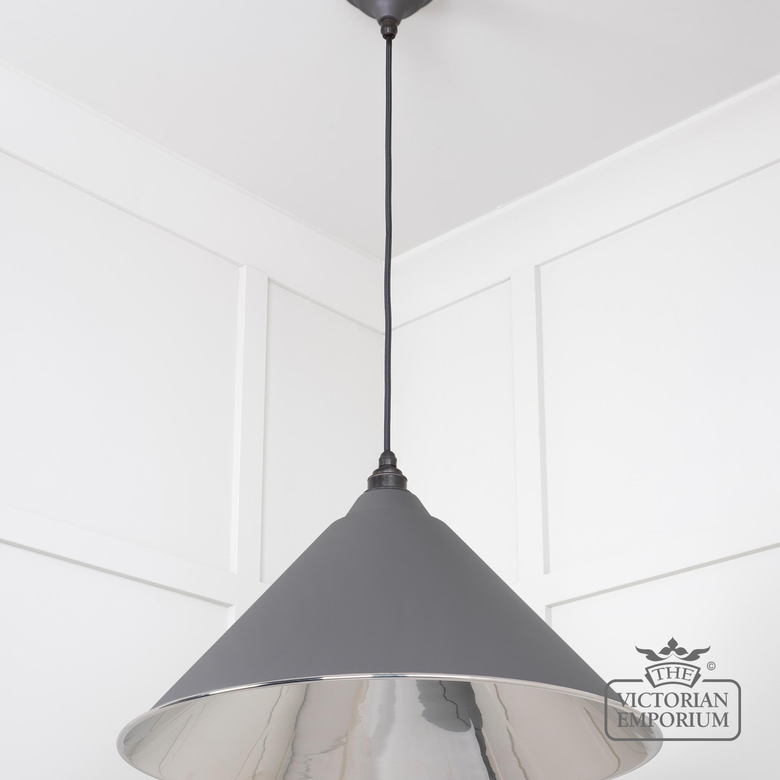 Hockliffe Pendant Light in Smooth Nickel and Bluff Exterior