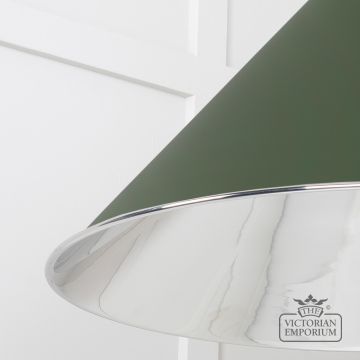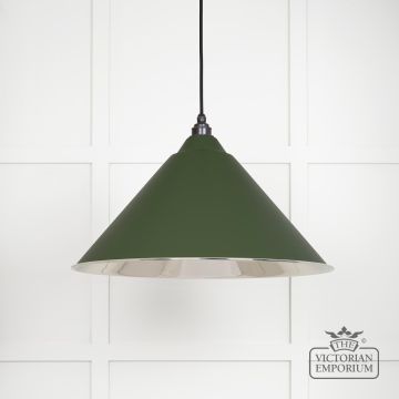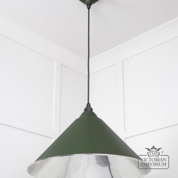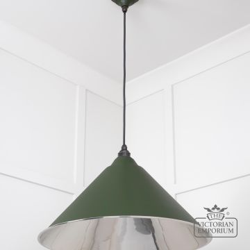 The Hockliffe’s conical shape creates a more modern feel in smooth nickel inside and Heath outside. It can be hung as a centrepiece or grouped to create a statement