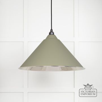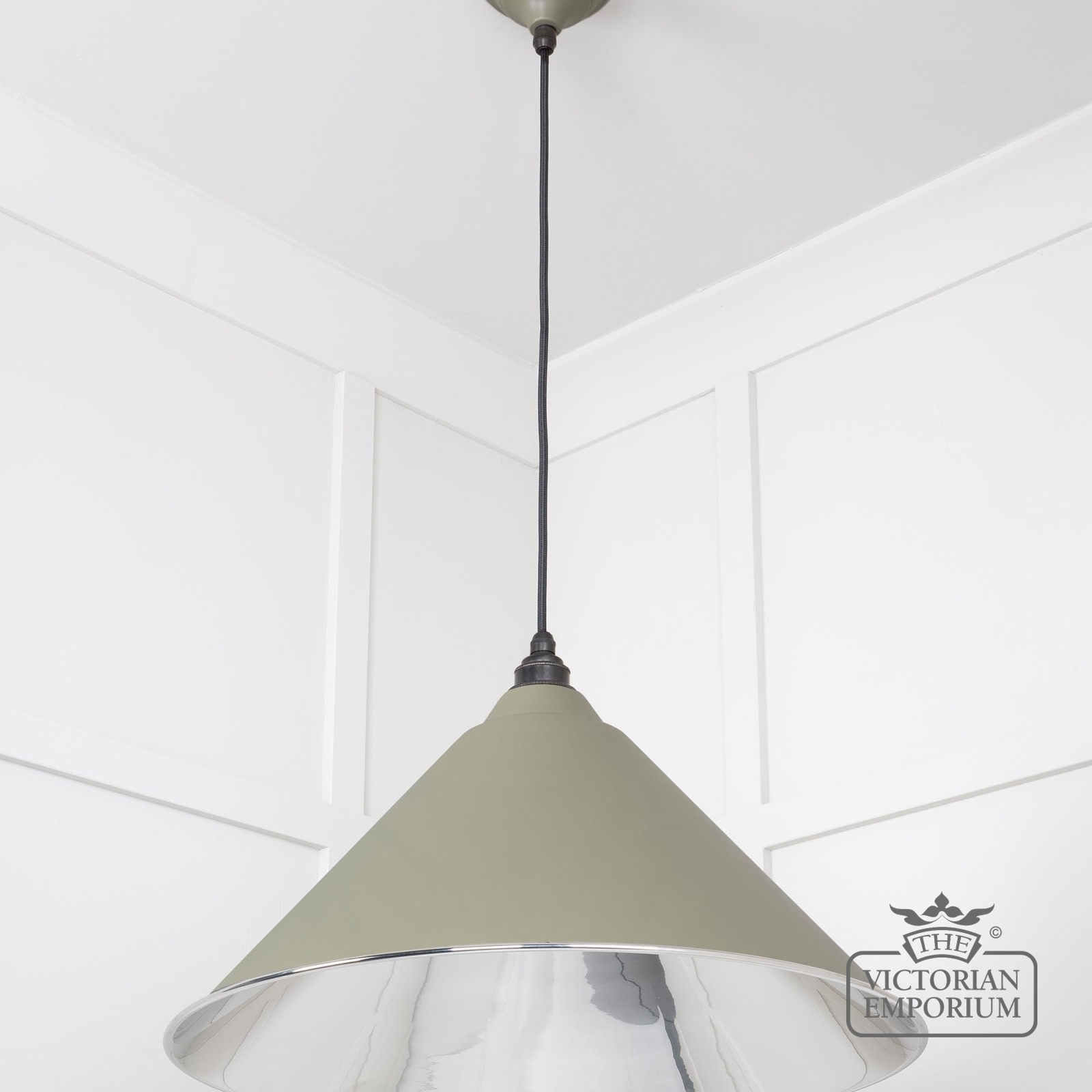 The Hockliffe’s conical shape creates a more modern feel in smooth nickel inside and Tump outside. It can be hung as a centrepiece or grouped to create a statement