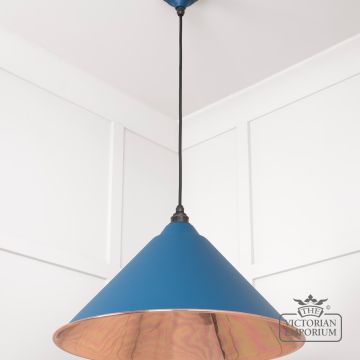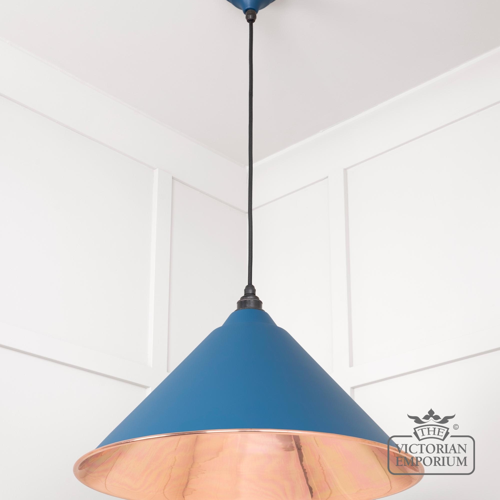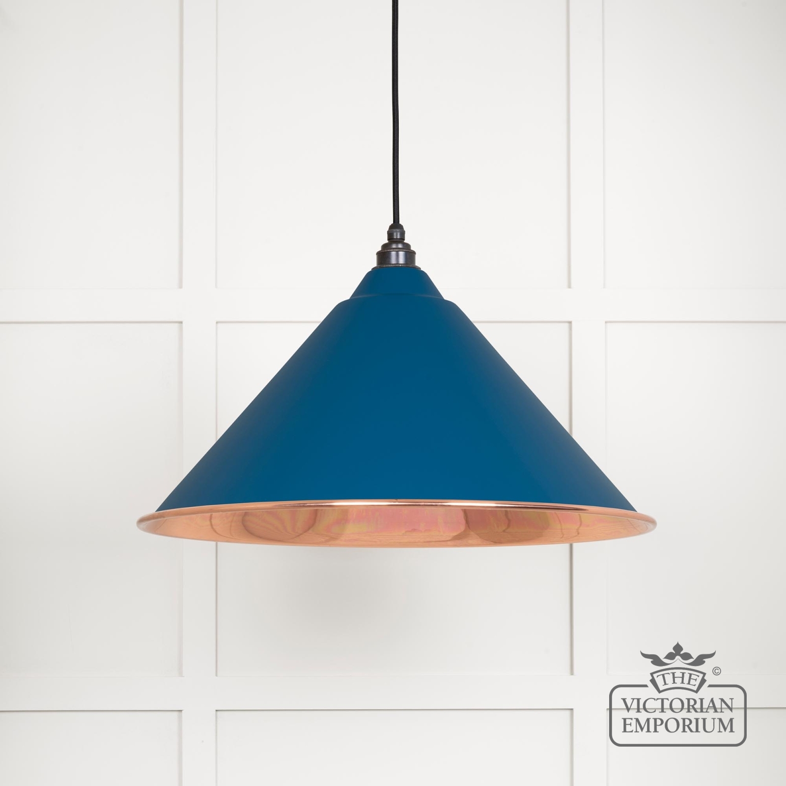 The Hockliffe’s conical shape creates a more modern feel in traditional copper with a Upstream exterior. It can be hung as a centrepiece or grouped to create a statement