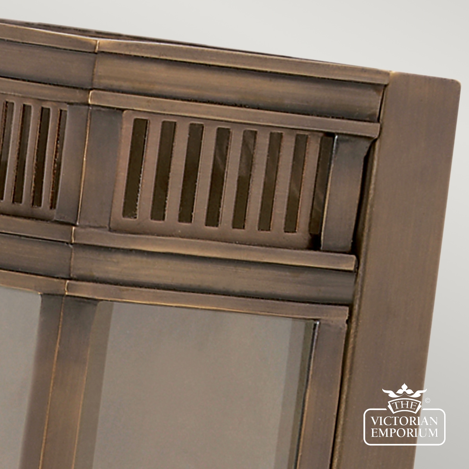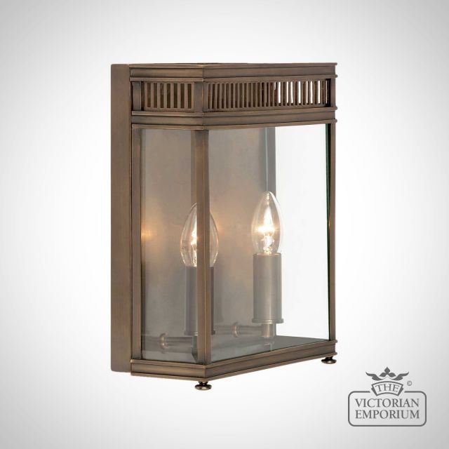 Medium sized elegant period exterior wall lantern with fluted top in dark bronze