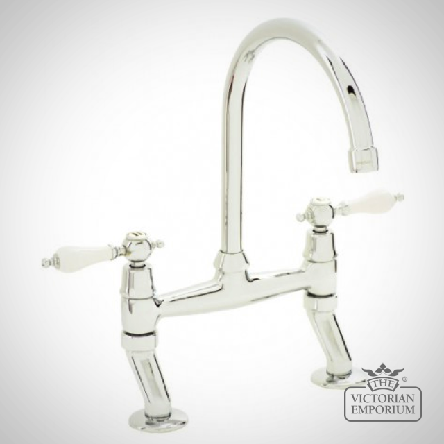 Our Isle bridge mixer tap is designed to complement a traditional kitchen look in combination with a Belfast ceramic sink. This tap features traditional lever handle design and an elegant swan neck spout.