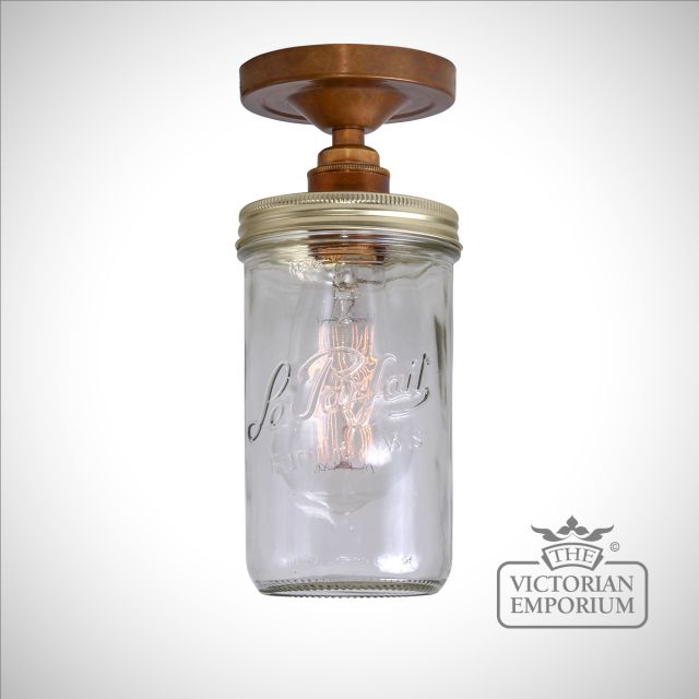 The Jam Jar Flush Ceiling Light in an eye catching design, made from an original “Le Parfait” jar converted into a beautiful ceiling light.