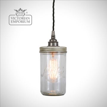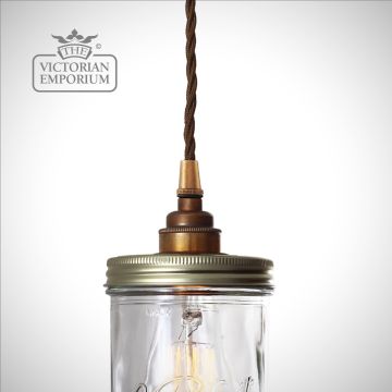 This is an eye catching design, made from an original “Le Parfait” jar converted into a beautiful pendant light with a vintage style fabric cable
