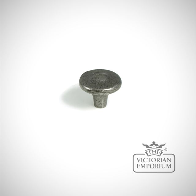 Iron Lacquer simple rustic round knob. Shown with matching pull handles