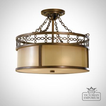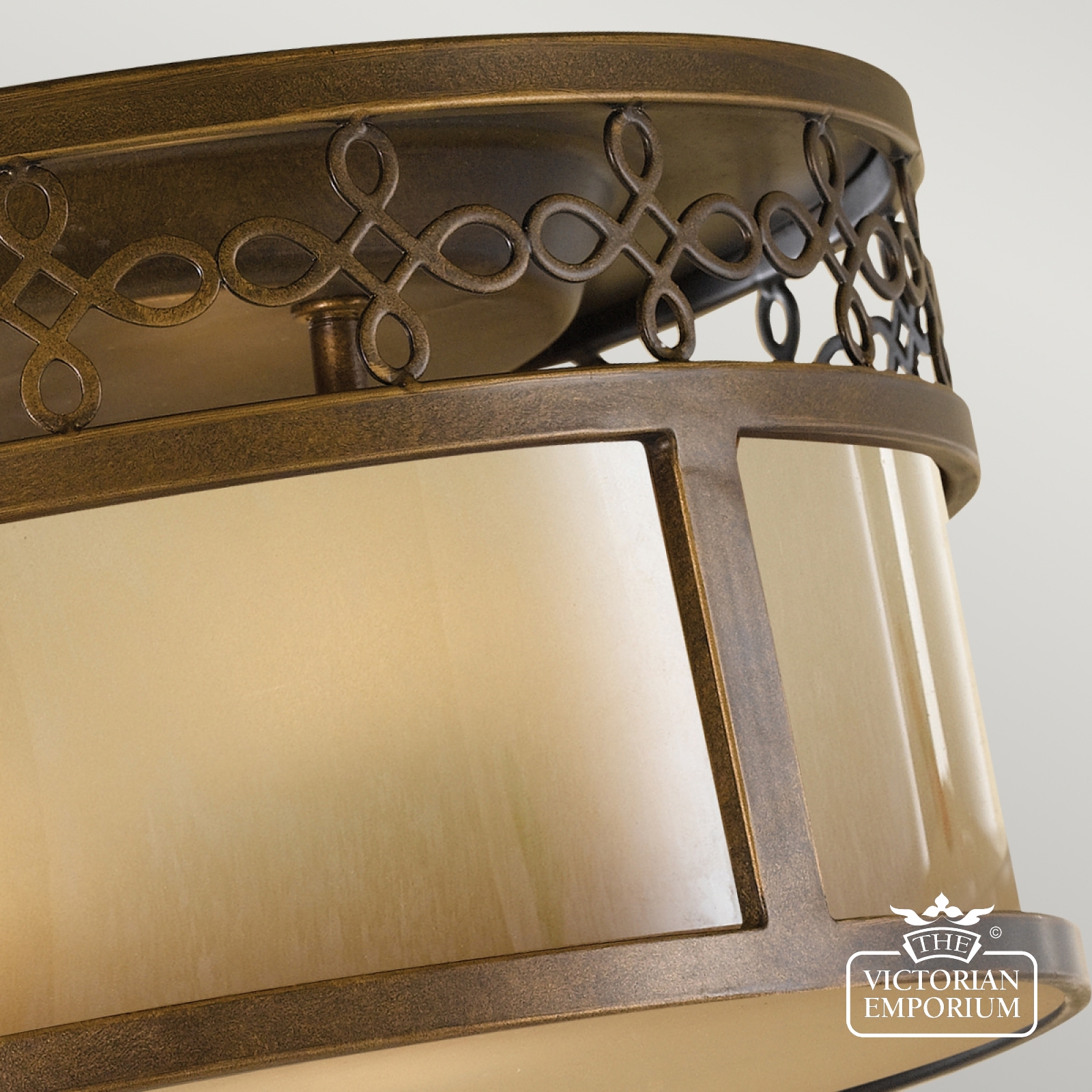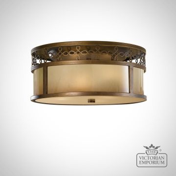Period style bronze flush mount light with decorative top band