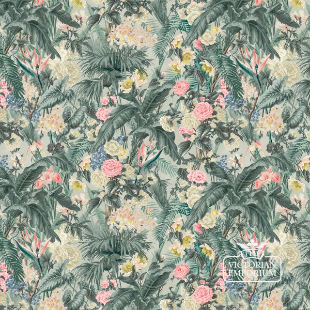 A stunning mix of verdant palms and beautiful blooms creates a rich tropical mood in this smart wallpaper. Offered in two colourways; one punchy and bright and the other more muted in tone. Sold as a pair of left and right hand rolls