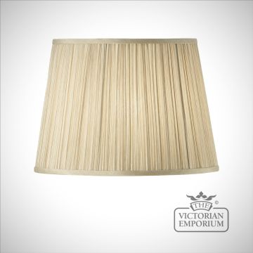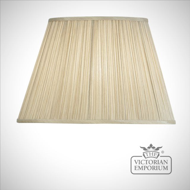 The 14 or 16.5 inch Kemp is a pleated, tapered shade in a beige organza effect fabric. Available in a choice of sizes