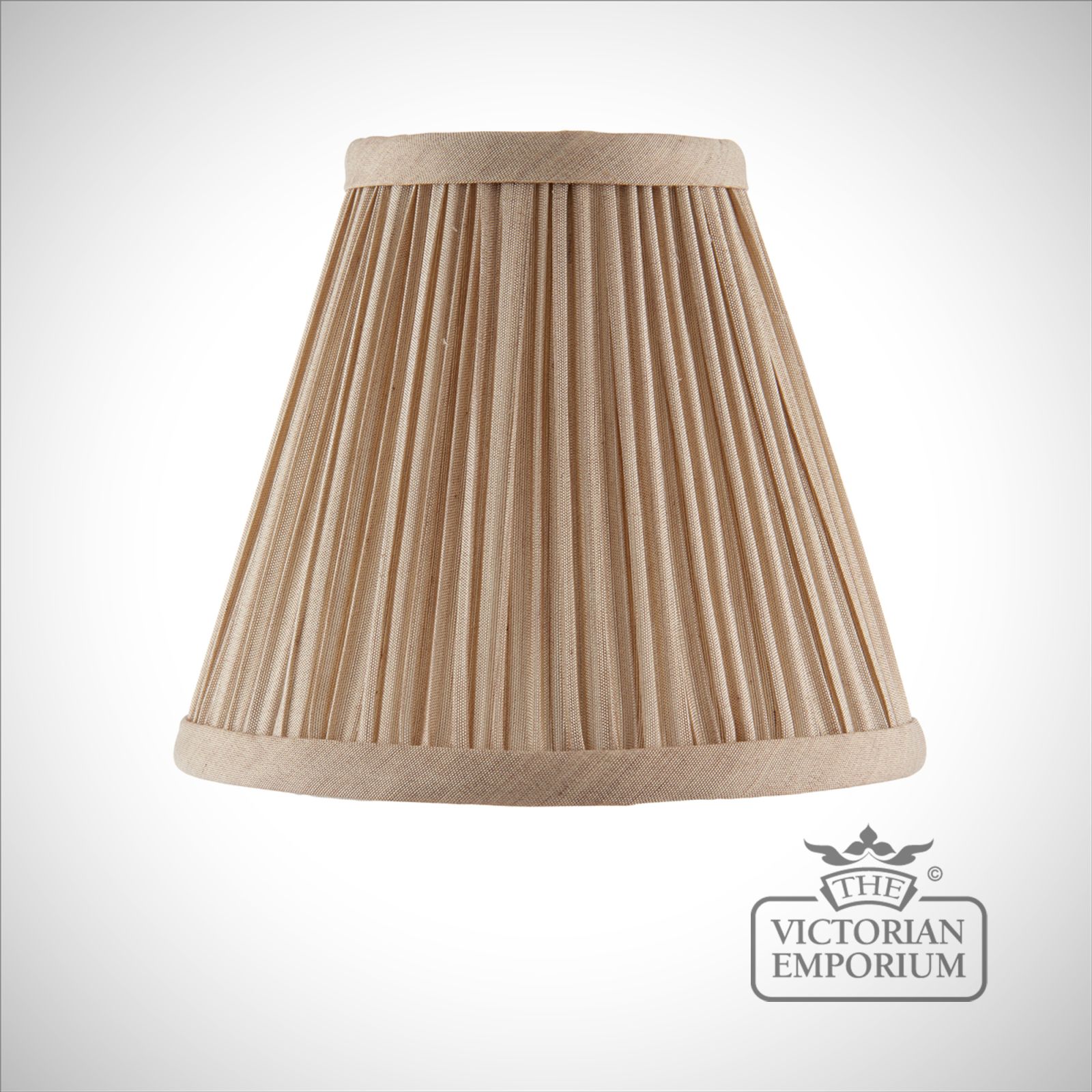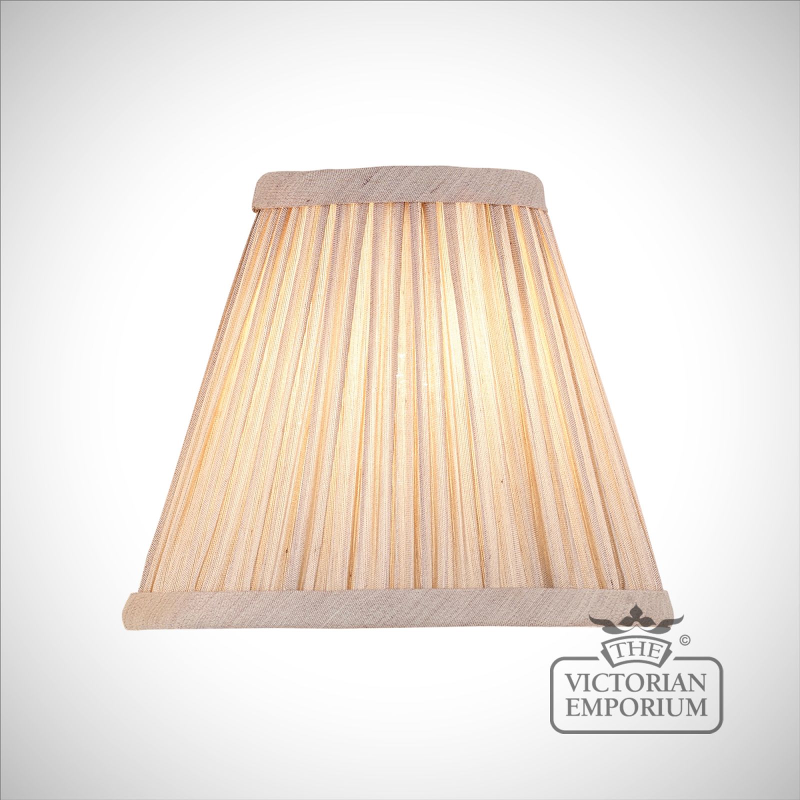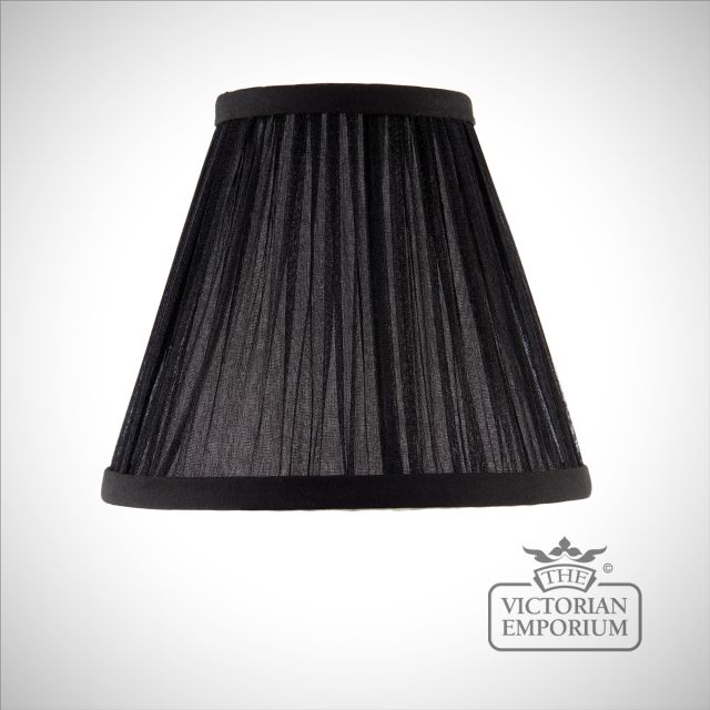 The 6 inch Kemp is a pleated, tapered shade in a black or beige organza effect fabric. Available in a choice of sizes