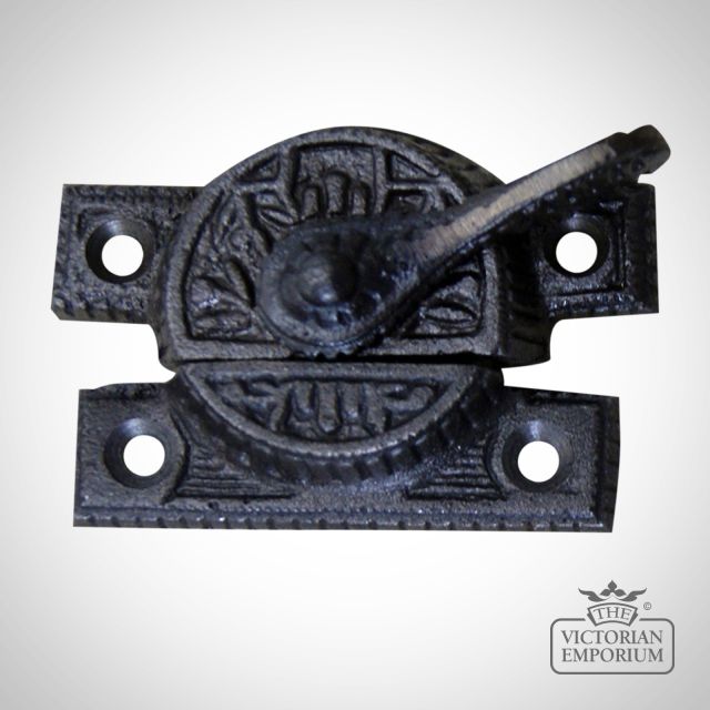 This is a really lovely decorative sash window fastener in iron. A lovely addition to any hallway or cloakroom