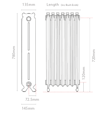 The Kensington radiator is a free standing vintage radiator with exquisite ornate detail. This is available in 580mm, 750mm and 780mm heights. Widths available from 323mm to 2208mm.