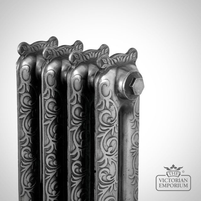 The radiator has a magnificent etched crown to accentuate the design. The radiators are supplied complete with plugs, bushes and air vents with a choice of 1/2 inch or 3/4 inch connections. This radiator comes in a black primer finish and can be painted for an additional cost. Please see related products for painting and valves.