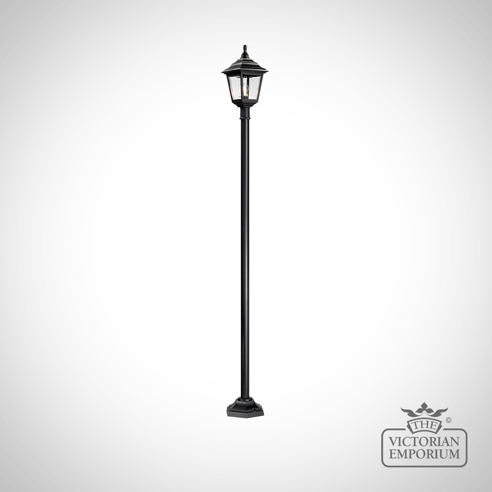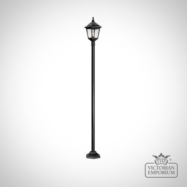 This lamp post is corrosion proof and impact resistant, made from black polymer and ideal for rough coastal conditions