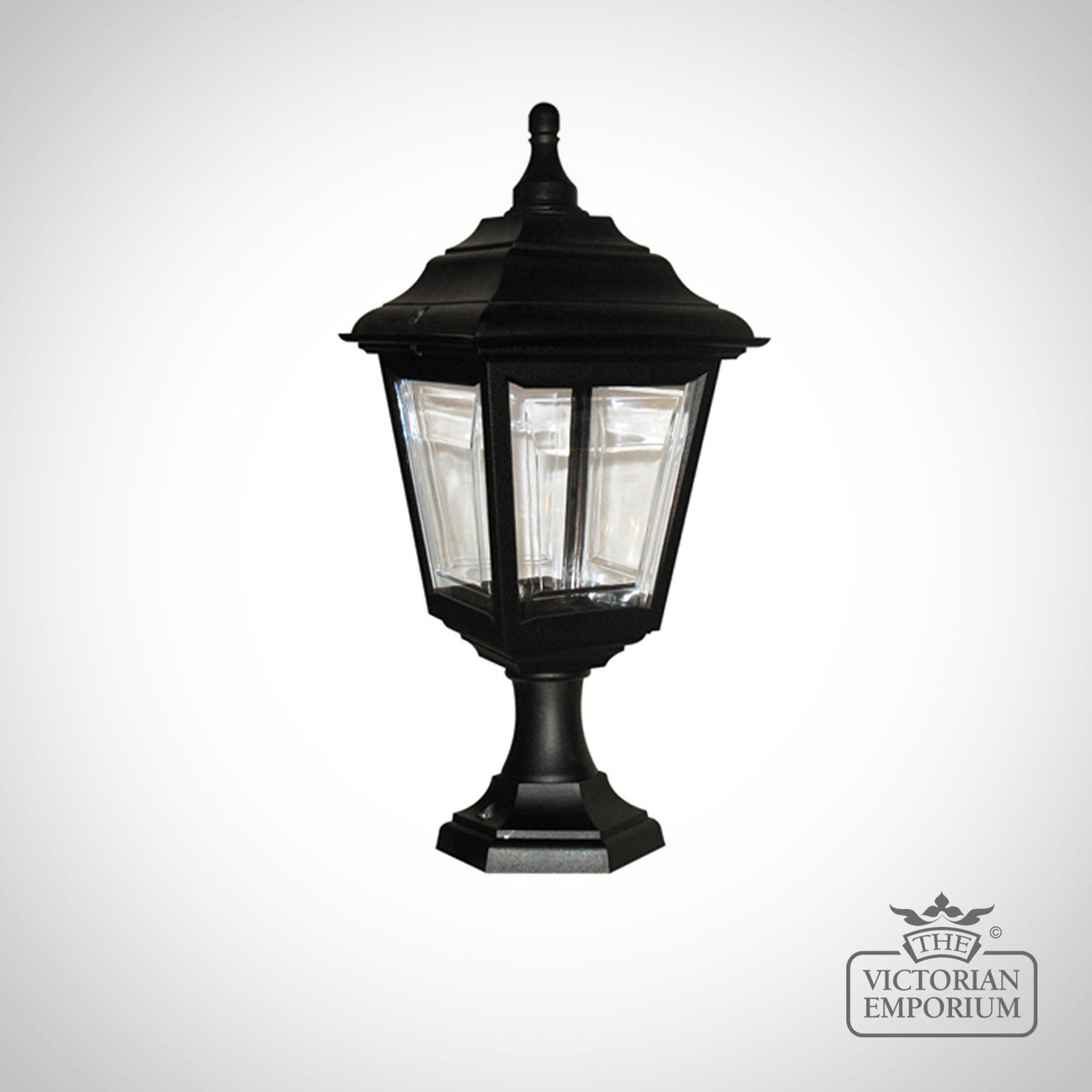 This pedestal lantern is corrosion proof and impact resistant, made from black polymer and ideal for rough coastal conditions