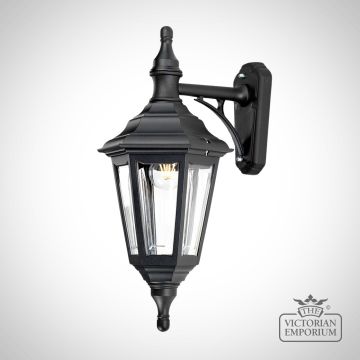 The Kinsale 6 sided hanging wall lantern is designed to be corrosion proof and impact resistant, made from Black Polymer with transparent polycarbonate diffusers for coastal weather conditions.