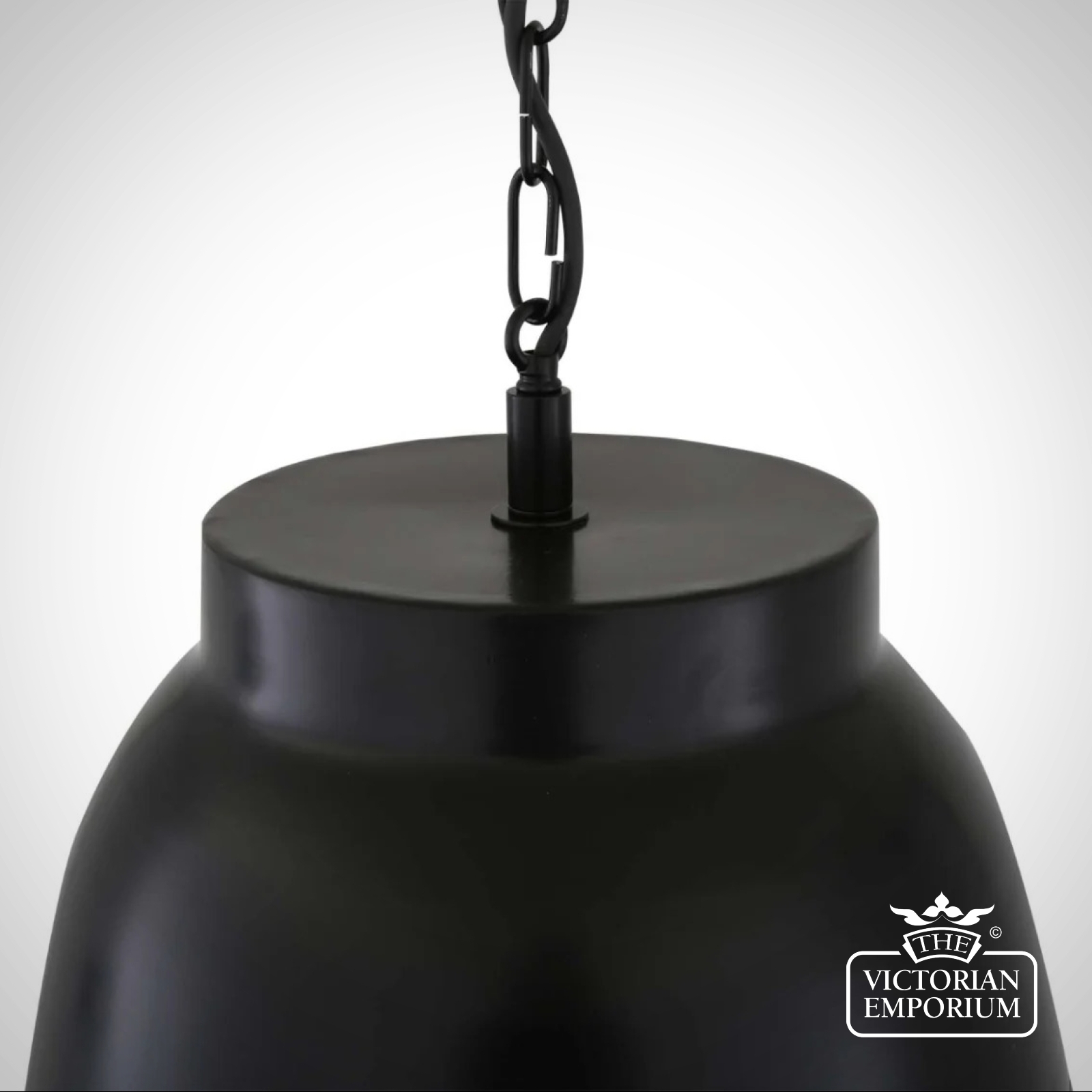 The Knightsdale pendant has a matching matte black ceiling rose. Longer lengths of cable and chain can be ordered if required.