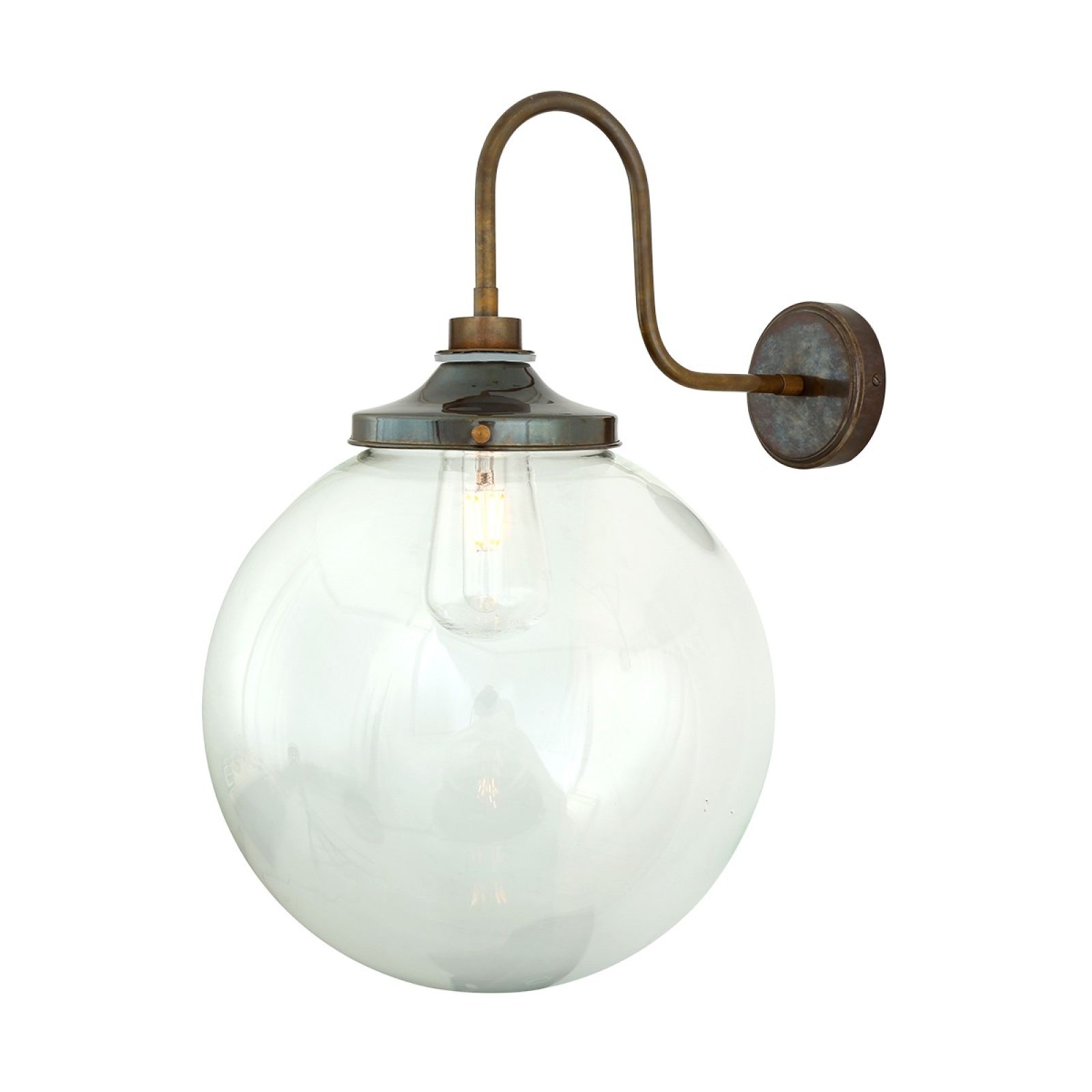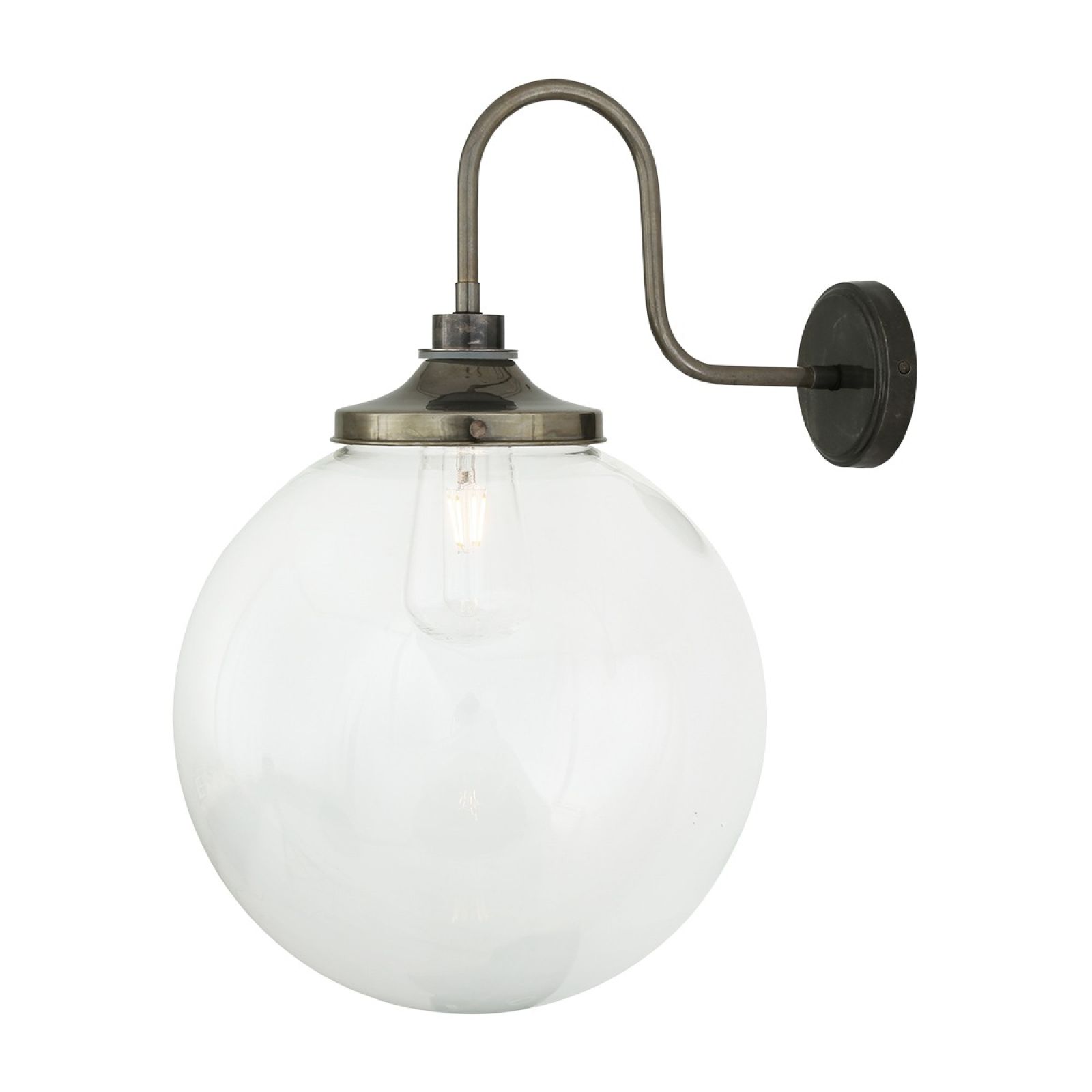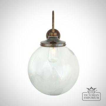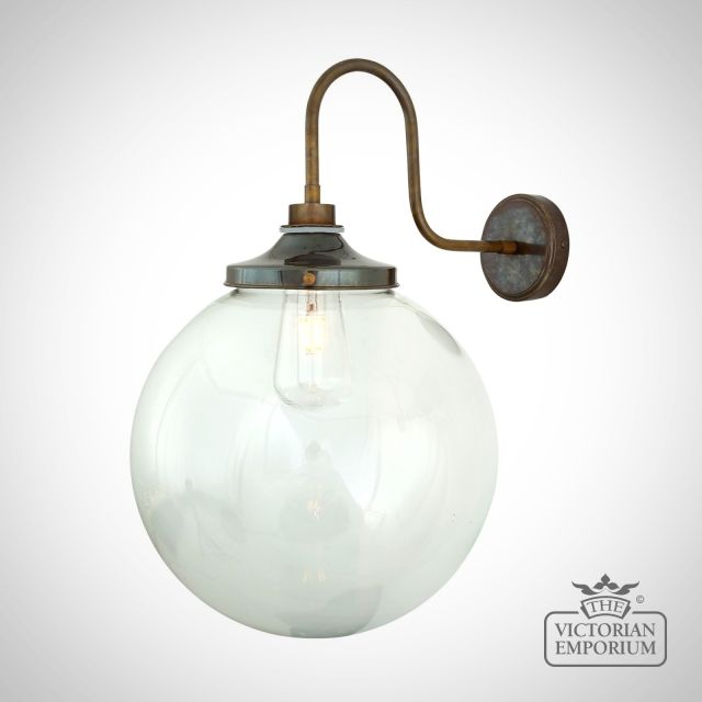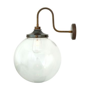 The Lagoon Bathroom or Outdoor Wall Light is a simple globe wall light with elegant swan neck and a clear glass globe shade and can be used in most bathroom locations or outdoors as a porch wall light.