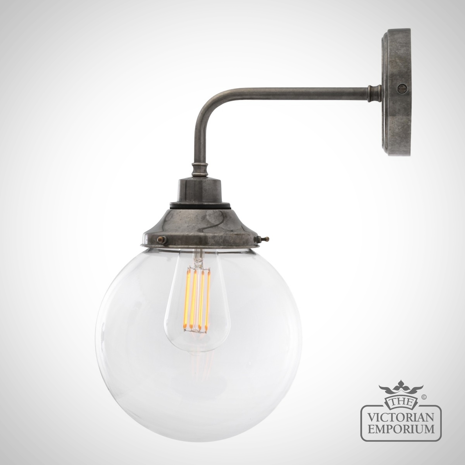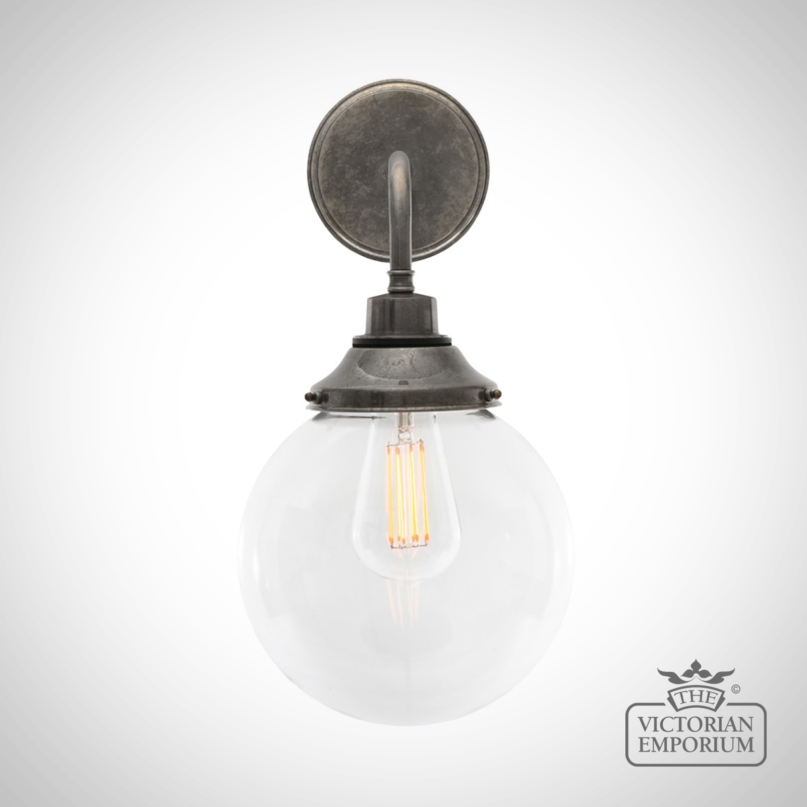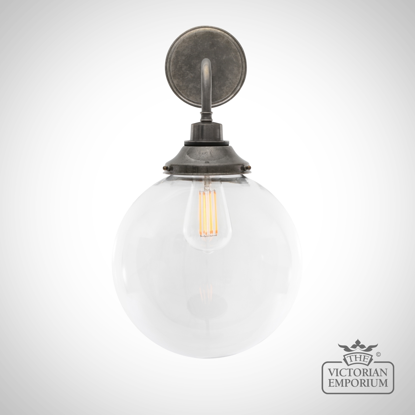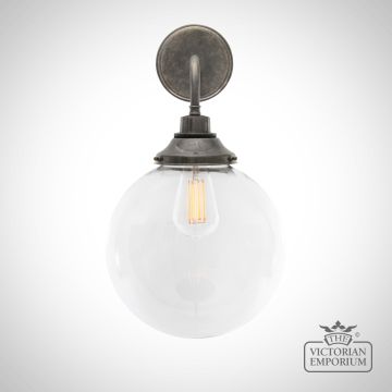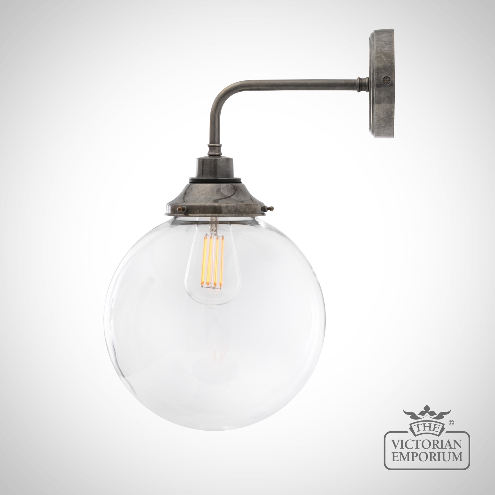 The Lagoon Bathroom or Outdoor Wall Light is a simple globe wall light with a clear glass globe shade in a choice of sizes and can be used in most bathroom locations or outdoors as a porch wall light.