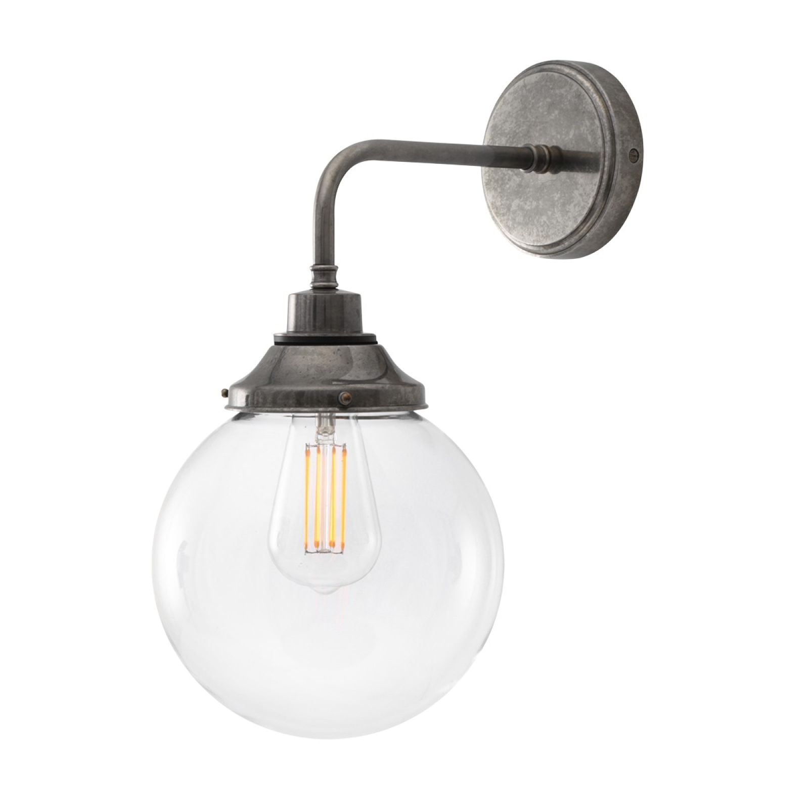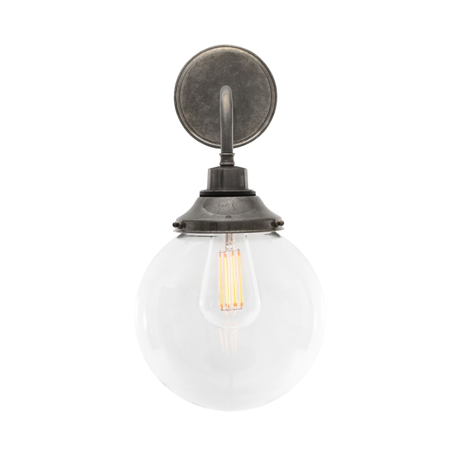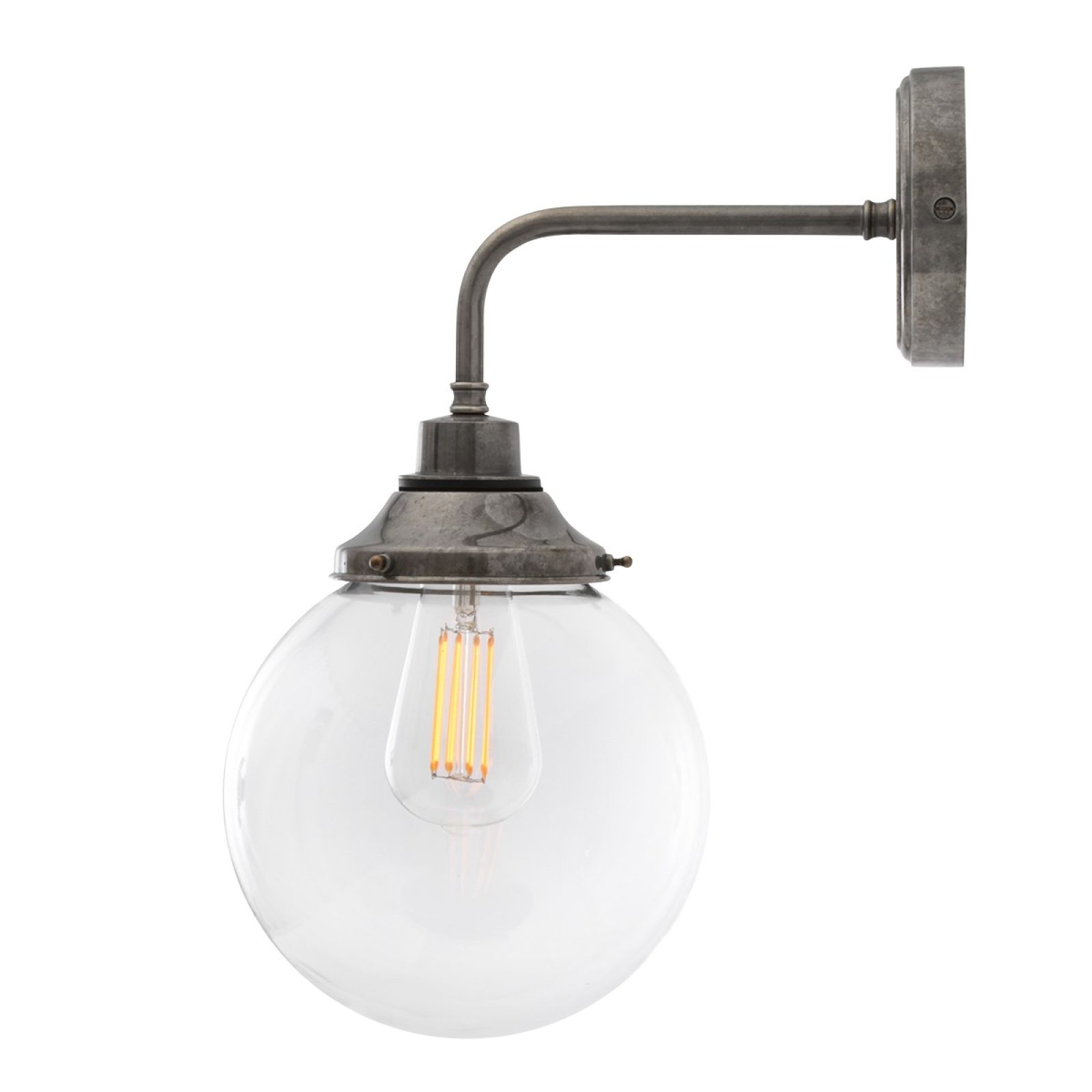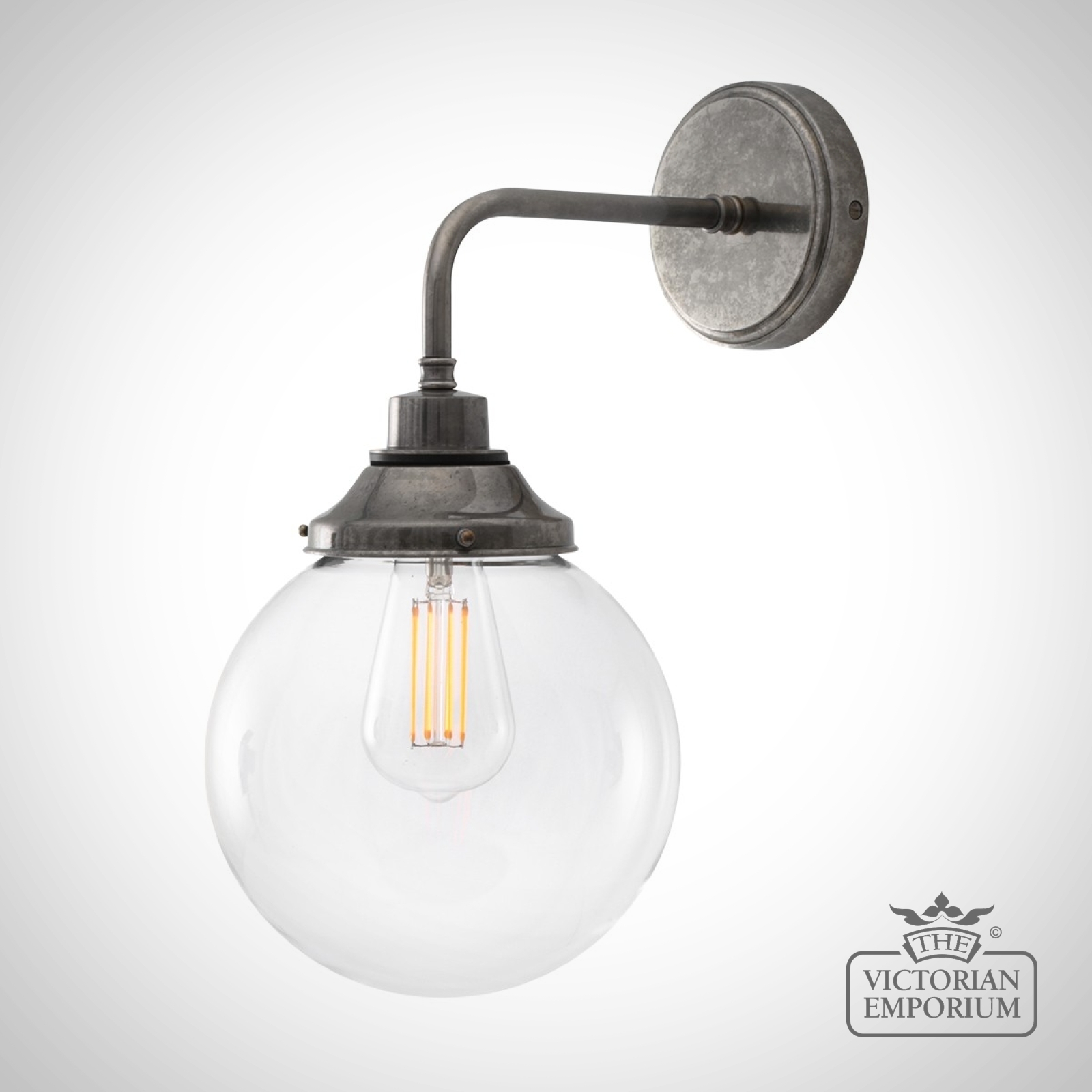 The Lagoon Bathroom or Outdoor Wall Light is a simple globe wall light with a clear glass globe shade in a choice of sizes and can be used in most bathroom locations or outdoors as a porch wall light.