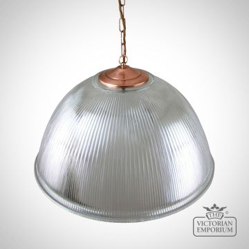 This is a simple dome shaped ceiling light in a copper finish in a large size