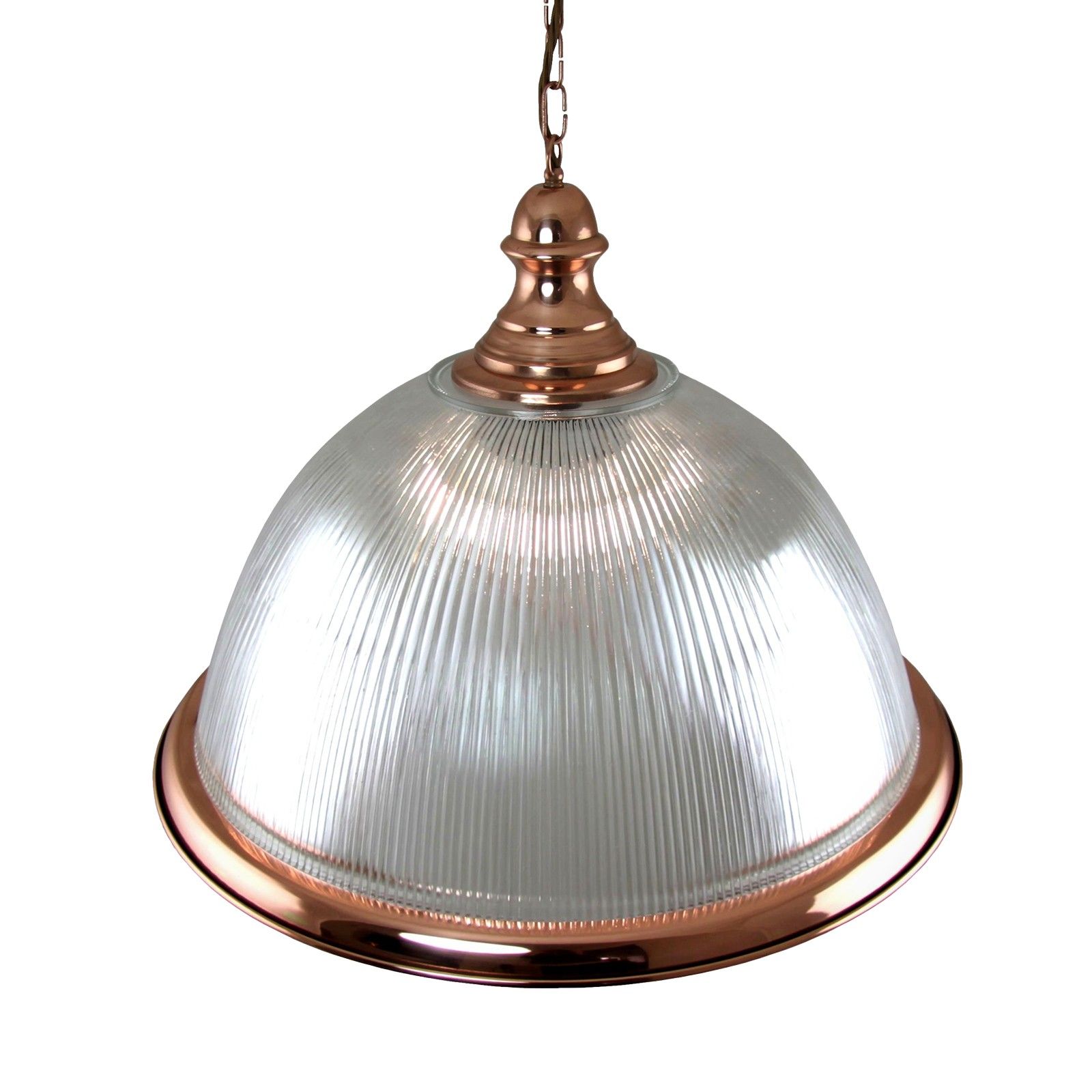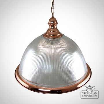 Large Dome Ceiling Light In Copper With Decorative Pendant And Copper Edging