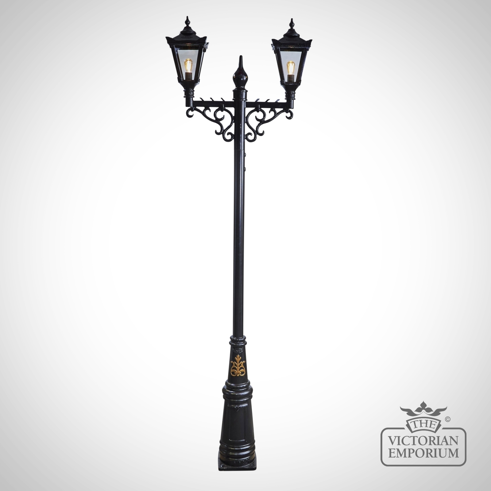 Large Double Cast Iron Lanterns on Cast Iron Lamp Post
