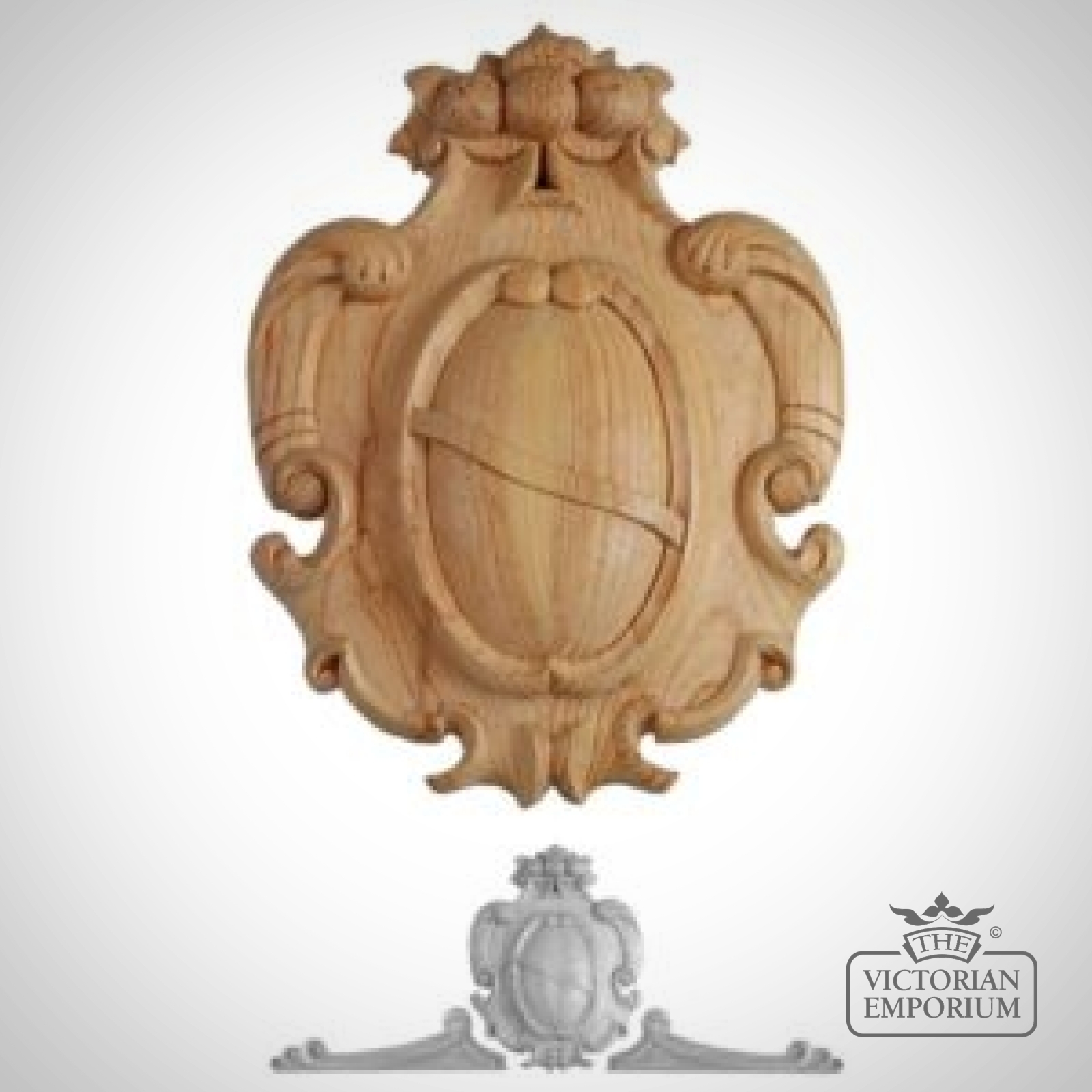 Beautiful decorative pine hand carved Heraldic Shield to be used as a decorative moulding in a variety of projects