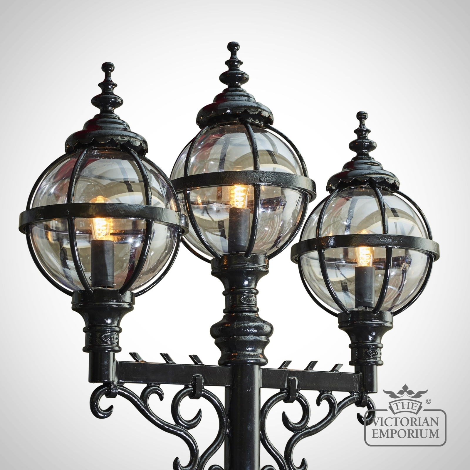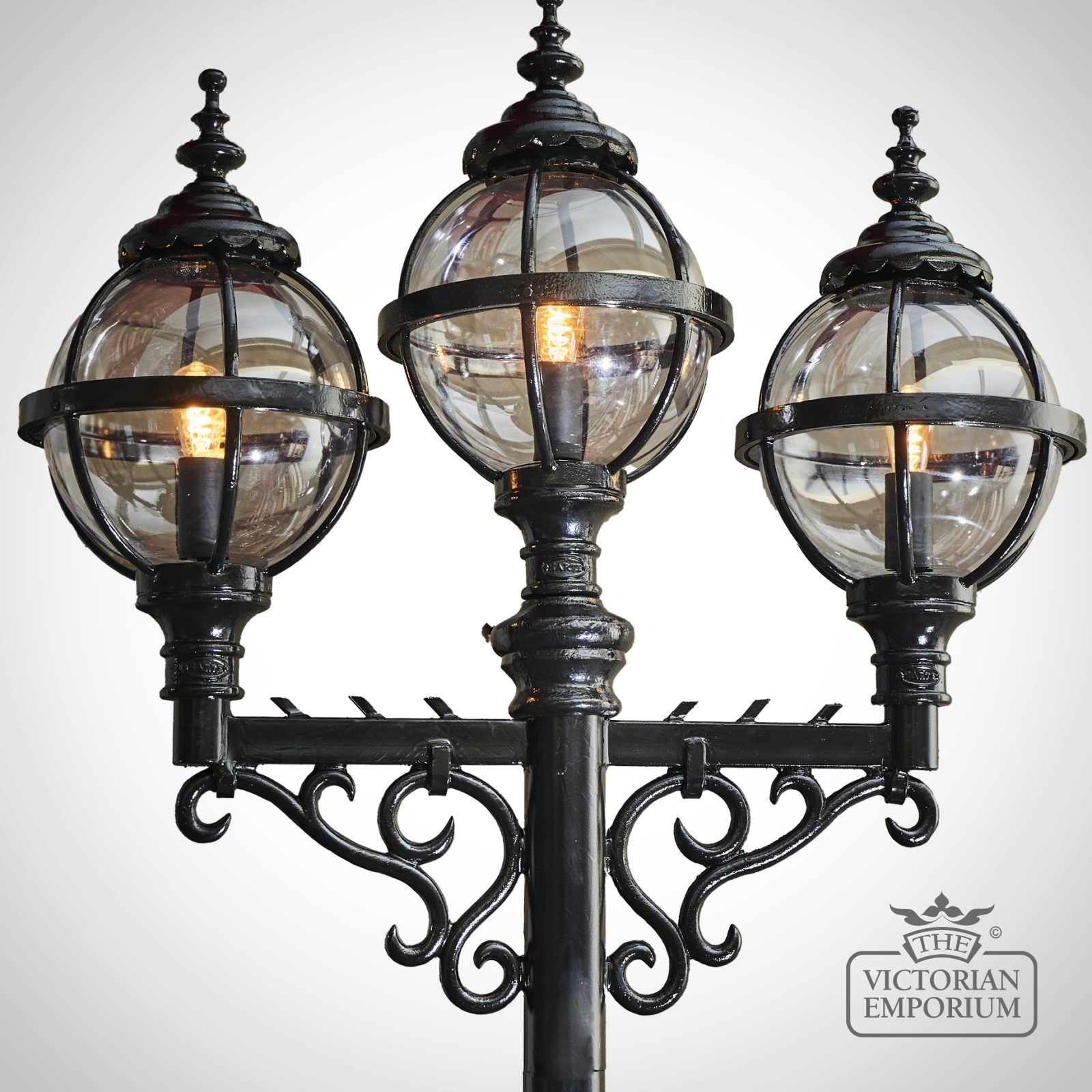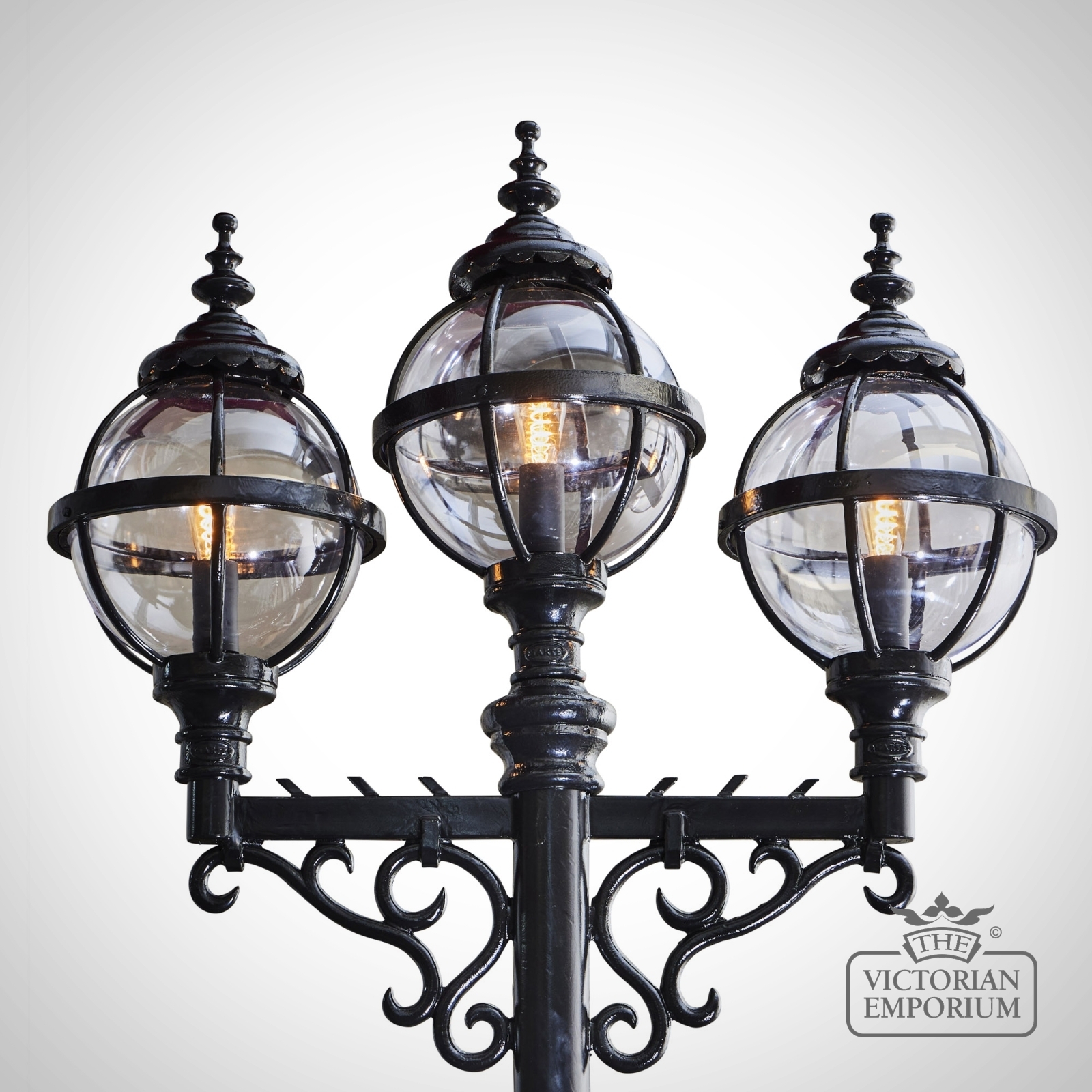 Large Triple Globe Outdoor Lanterns on Cast Iron Lamp Post