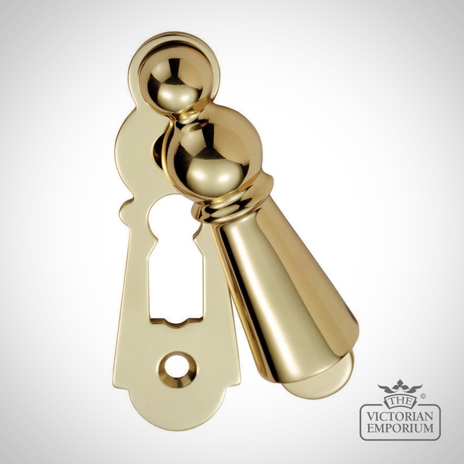 This is a large and imposing covered escutcheon with a heavy sliding cover which swings in front of the slimmer keyplate to expose a traditional keyhole