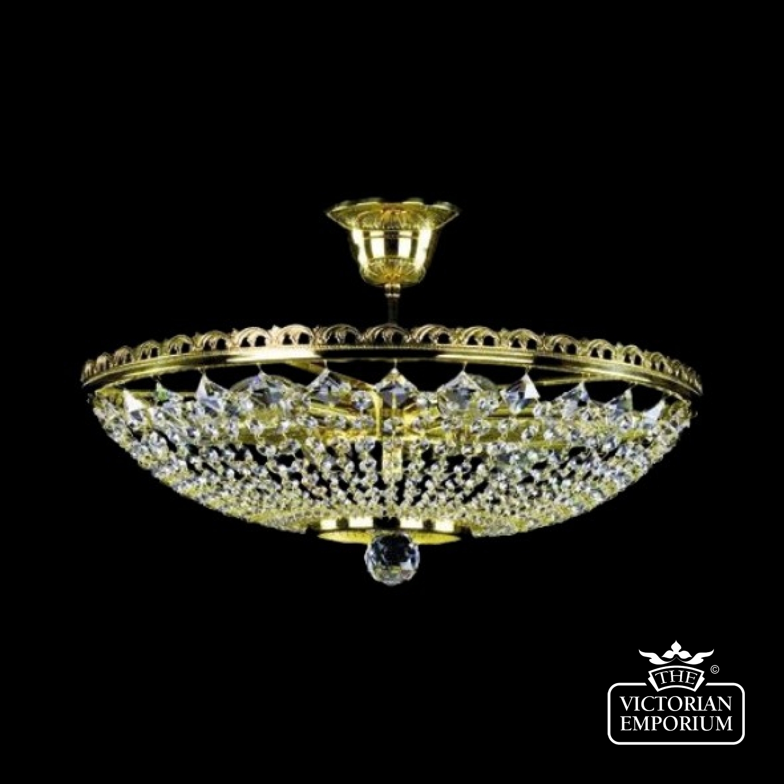 Beautiful low ceiling bohemian crystal (30%PbO) basket. Lovely ornate frame with mirror finish inner plate and crystal trimmings