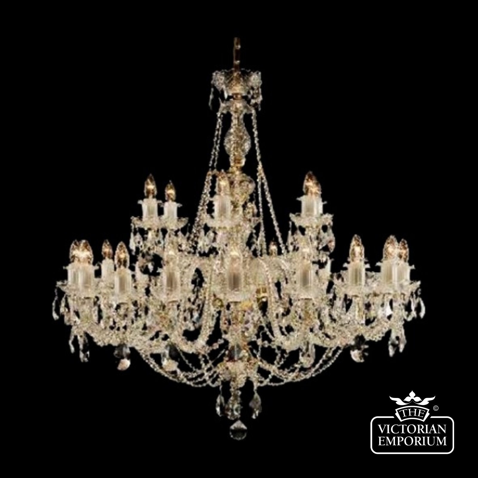 The crystal trimmings on our chandeliers are as follows: Exclusive Bohemian Crystal (Czech republic 30%PbO). The machine cut trimmings are characteristic with a brilliant polish and decompose the light beams in a light spectrum. Preciosa crystal (Czech republic 30%PbO).