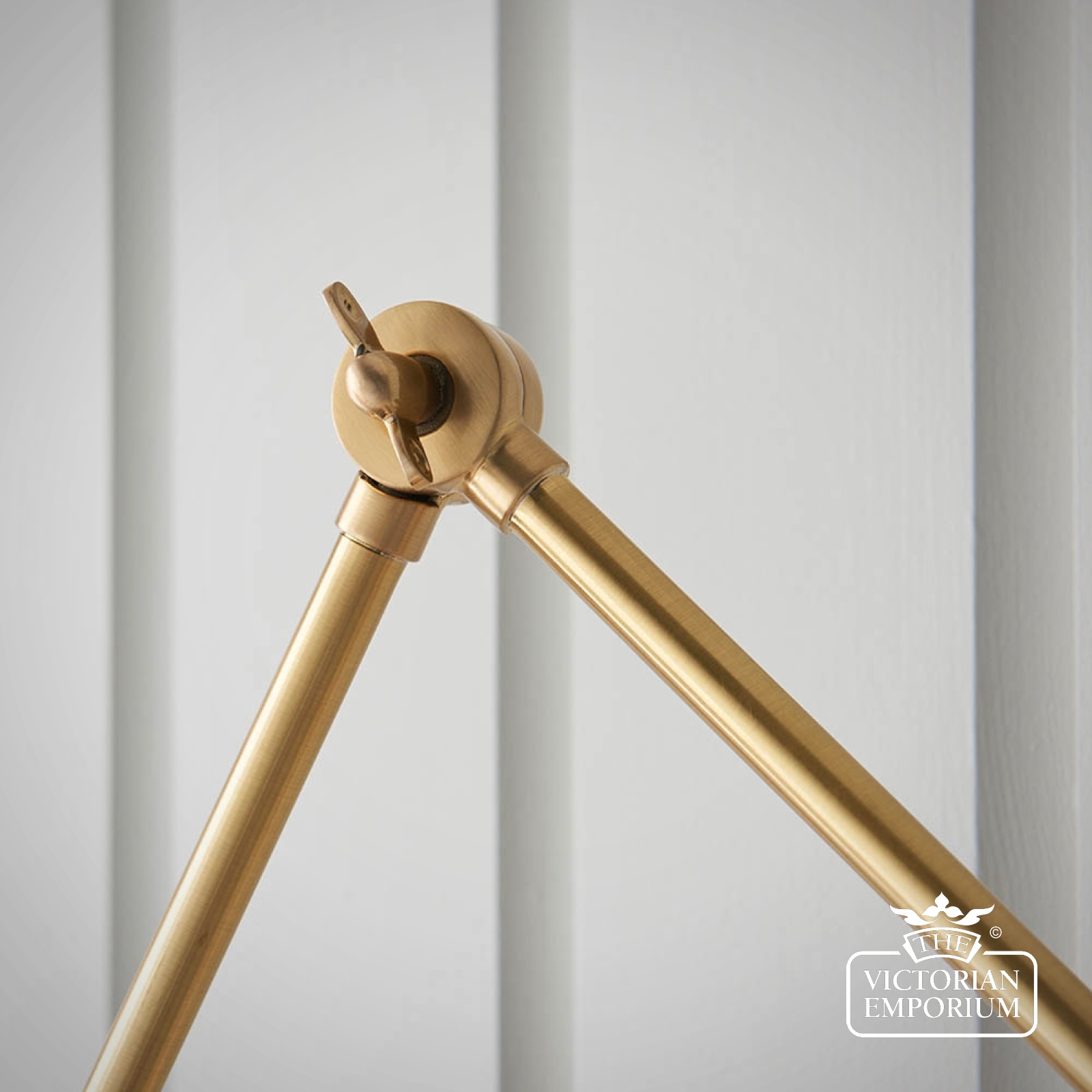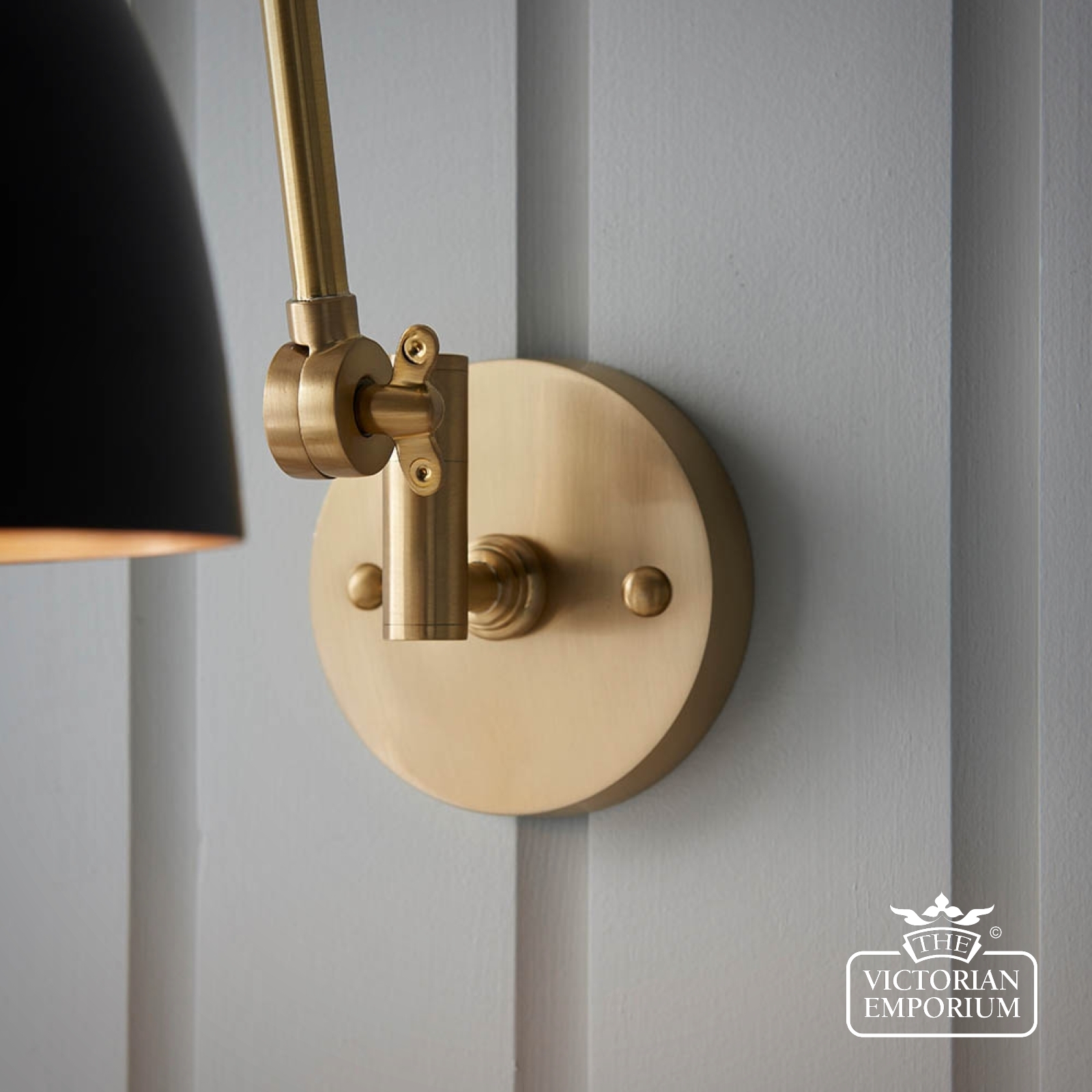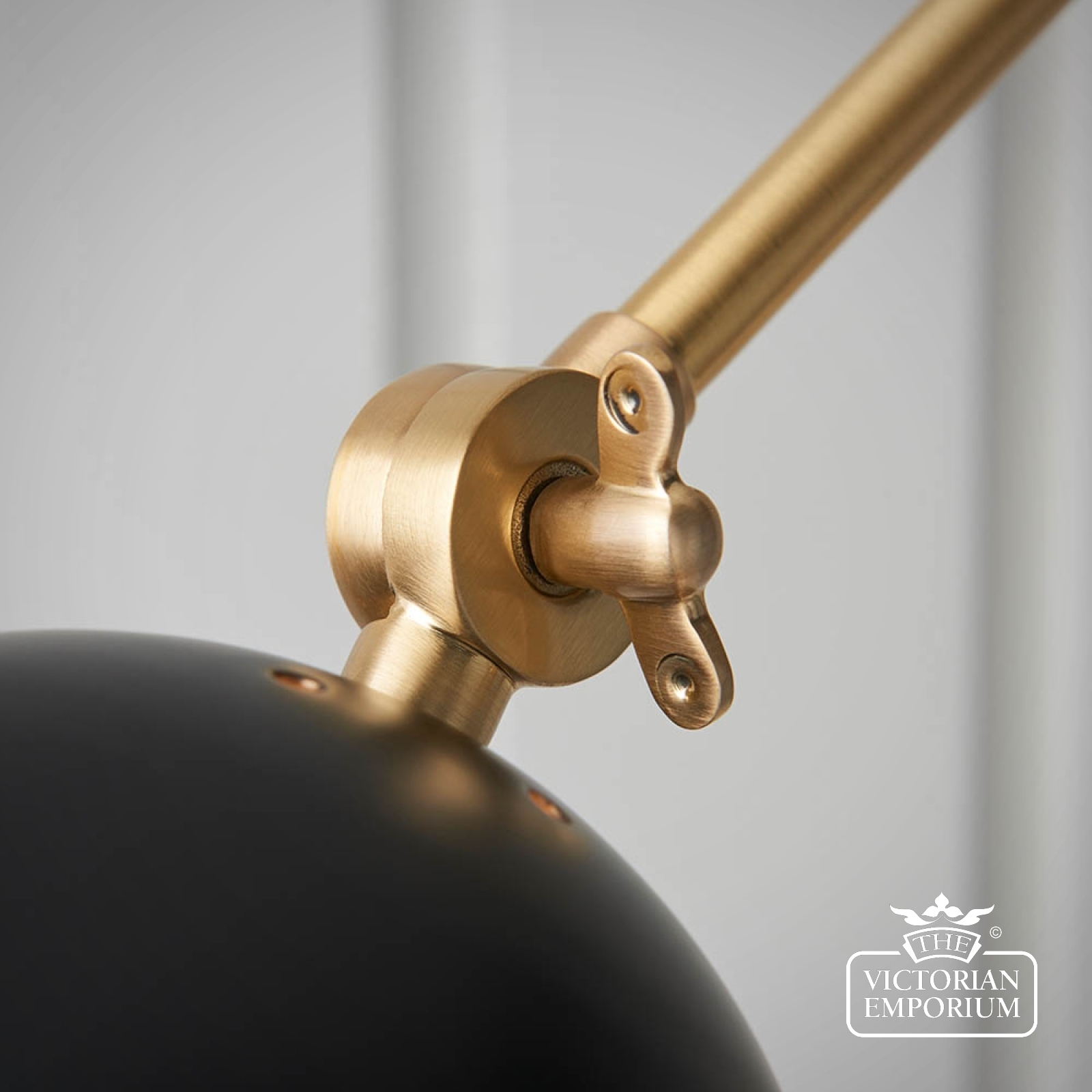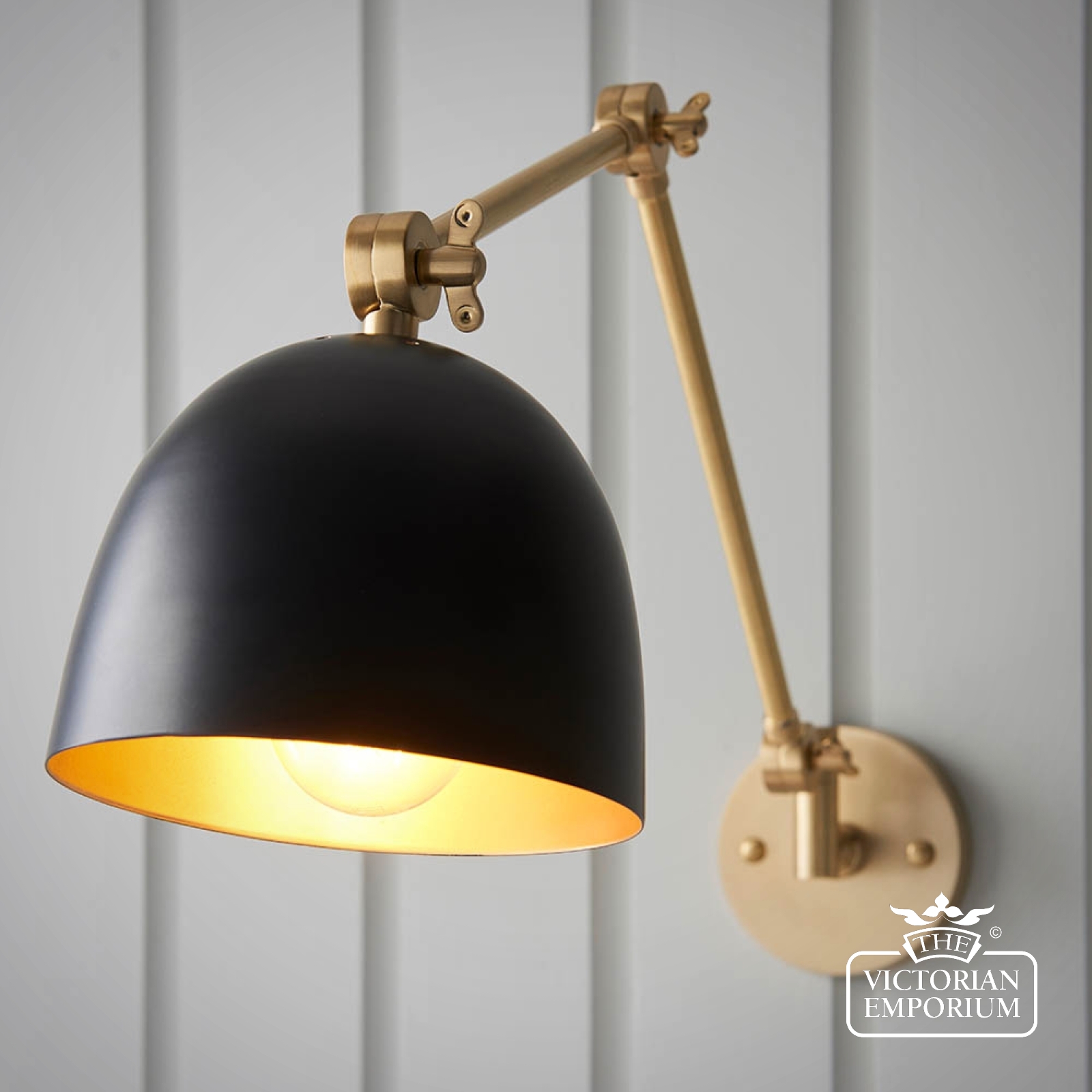 This attractive wall light has fully adjustable arms, to position either side of your bed or as a task light above a kitchen work top. It’s made of brass with a striking antique finish and a matt black painted shade.