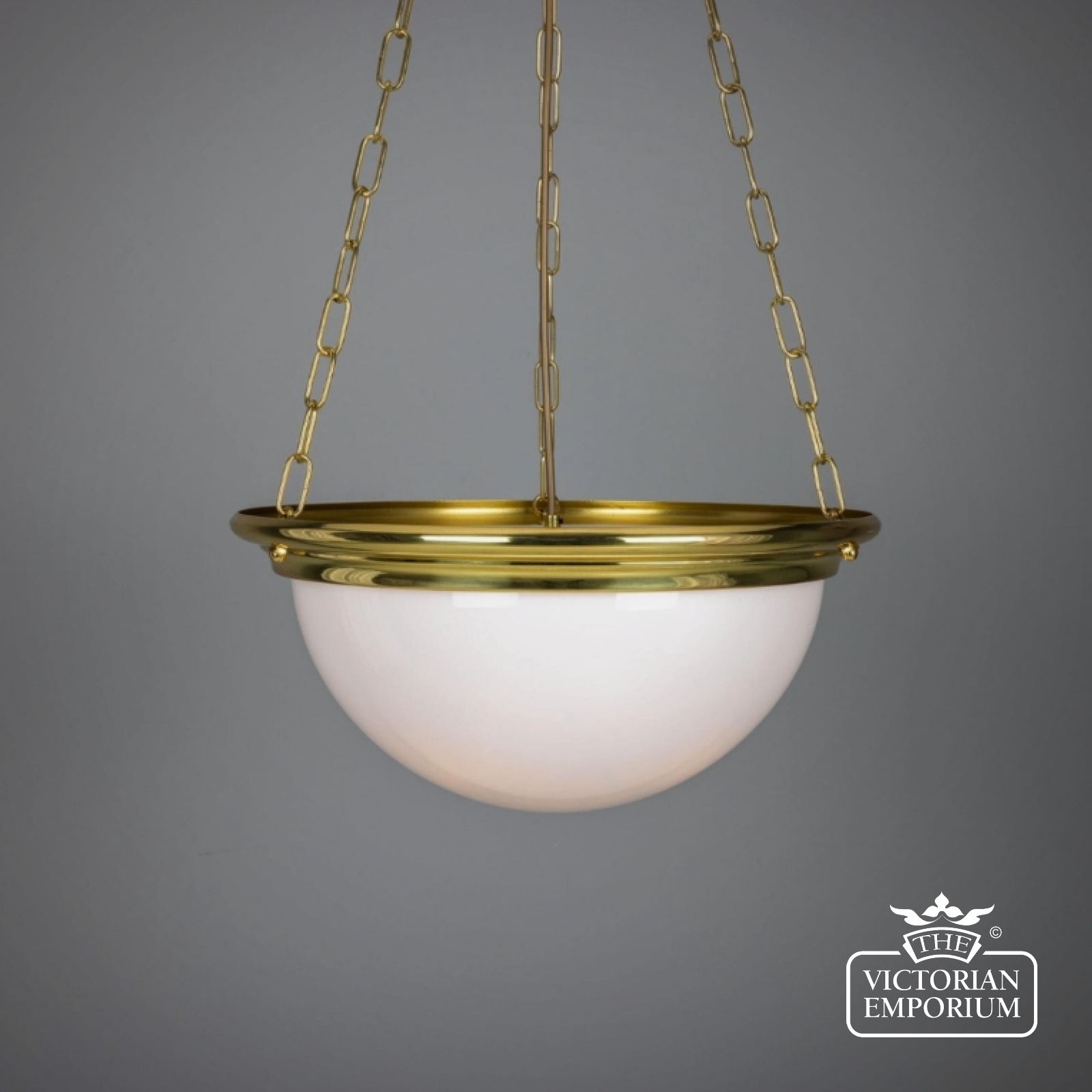 This simple and elegant brass and acrylic pendant light is available in a range of finishes and sizes.