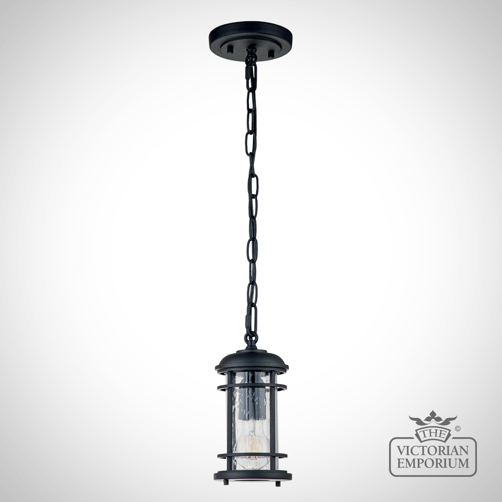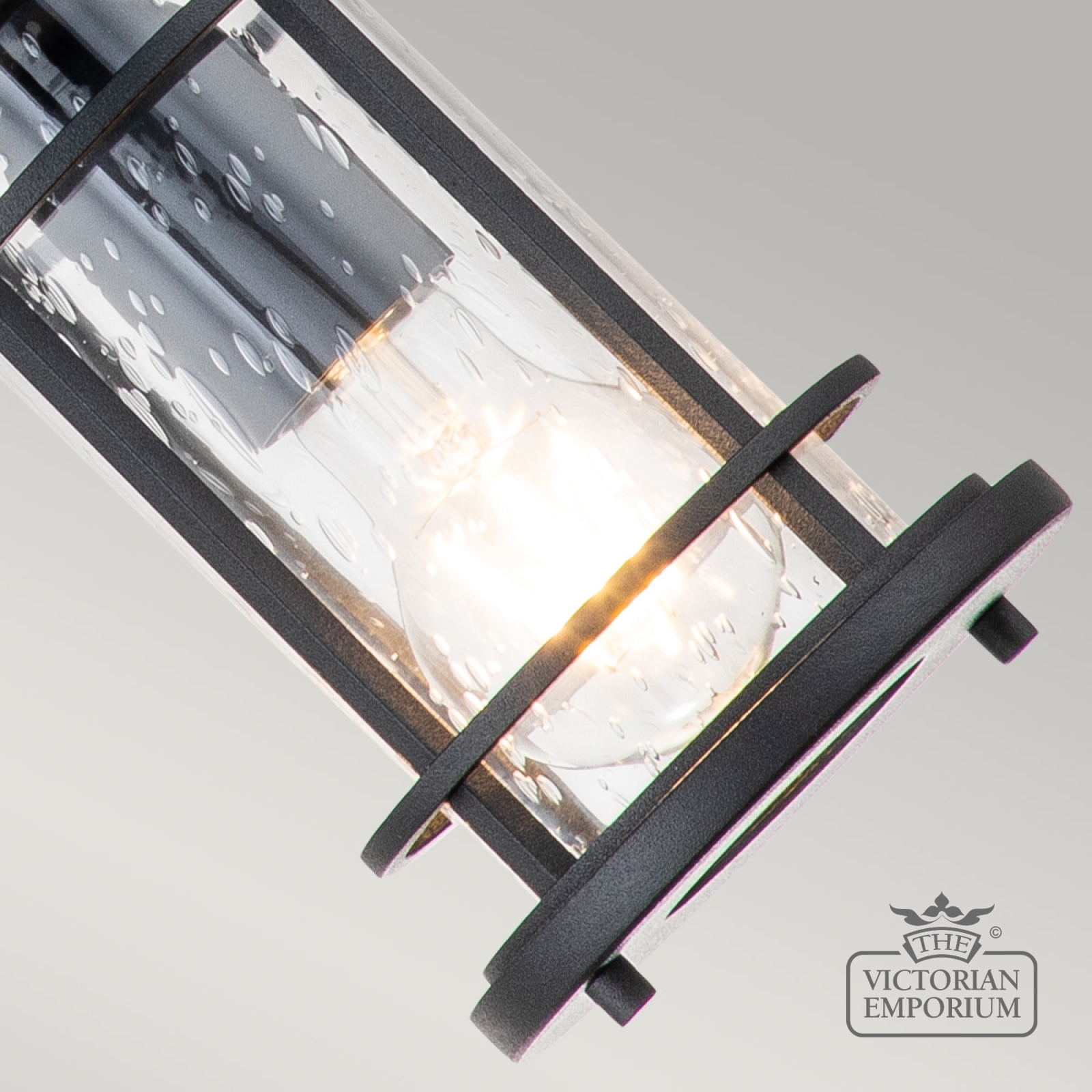The Lighthouse outdoor lighting collection is versatile with a nautical feel. Constructed of Aluminium and steel, it is finished in a Textured Black and has clear seeded glass.