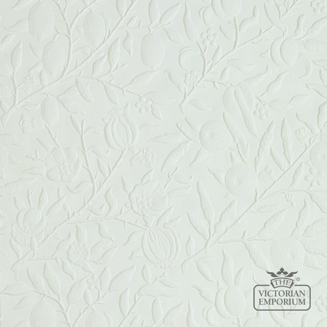 This Lincrusta wallpaper in collaboration with Morris & Co shows an abundance of ripened pomegranates hanging temptingly from the branches of an overflowing tree. Amongst flora are fine-printed branches in the background to give the design an irresistible depth. One of the earliest Morris & Co. wallpaper designs, Fruit was printed in 1864.
