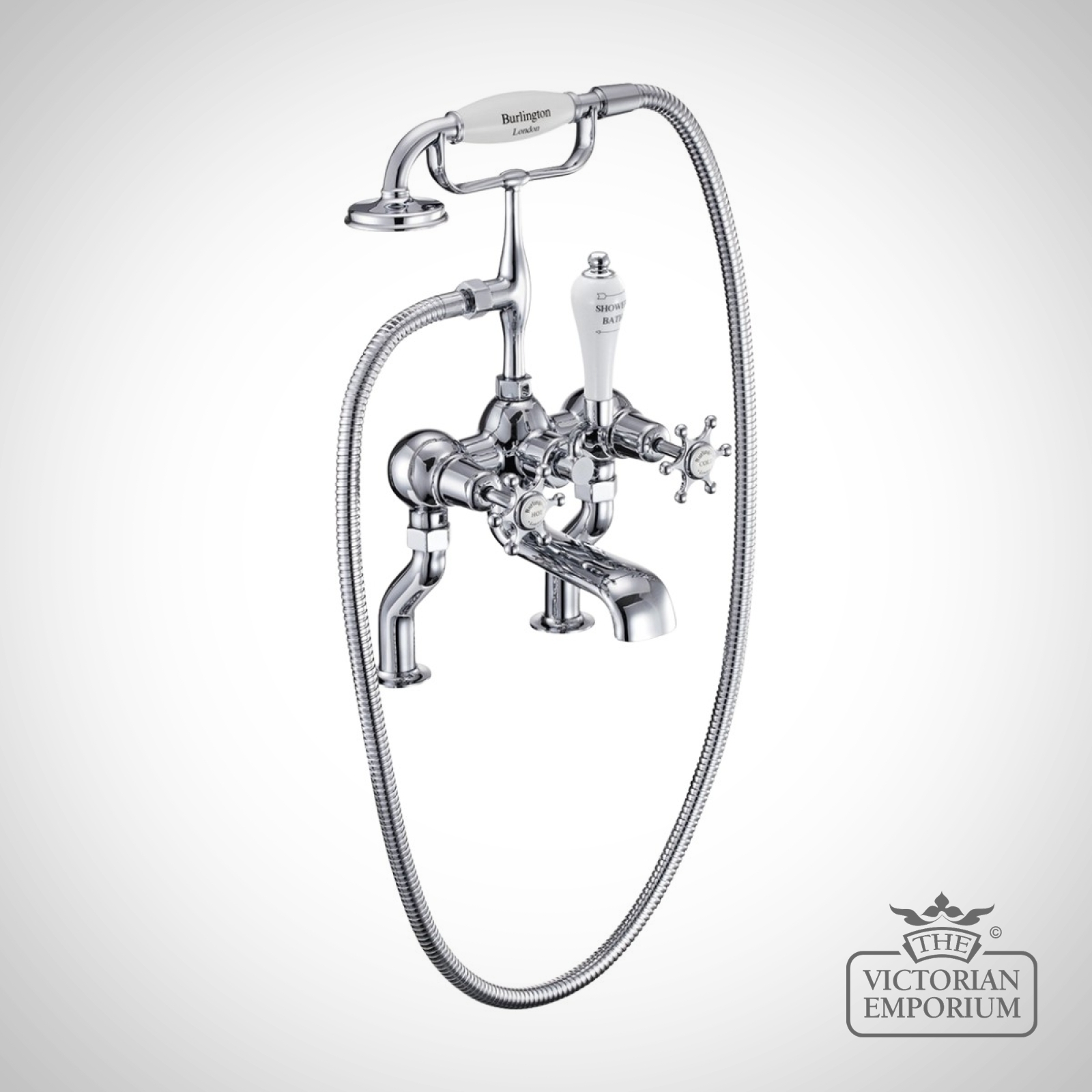 Bath shower mixer including the standard cradle, ‘S’ adjuster, ceramic diverter, hose, ceramic telephone handset, with tap heads, bases and unions