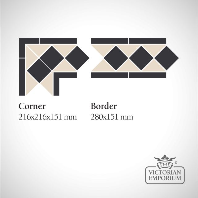 Victorian mosaic pattern tiles in Victorian colour pallet of white and black - sold by the sheet.