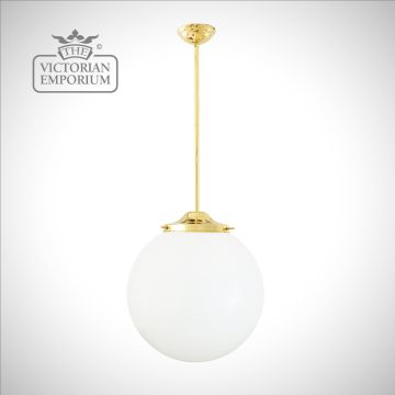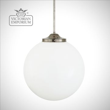 This globe pendant light is a bold addition to any kitchen, living room, or your lobby with a classic opal glass shade to cast a soft ambient light over a wide area.