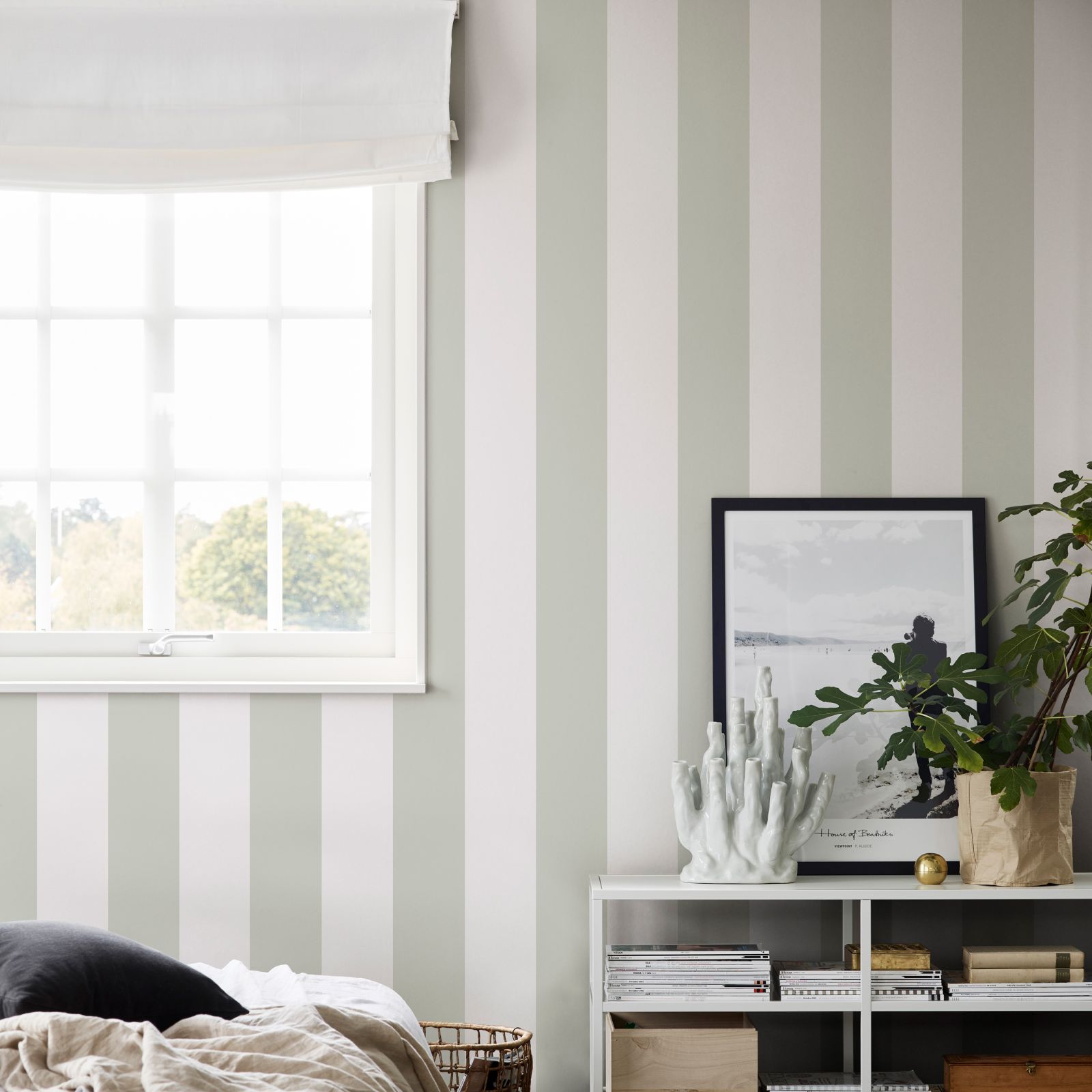 A bold striped wallpaper in a variety of colourways to make a statement in any room of your house