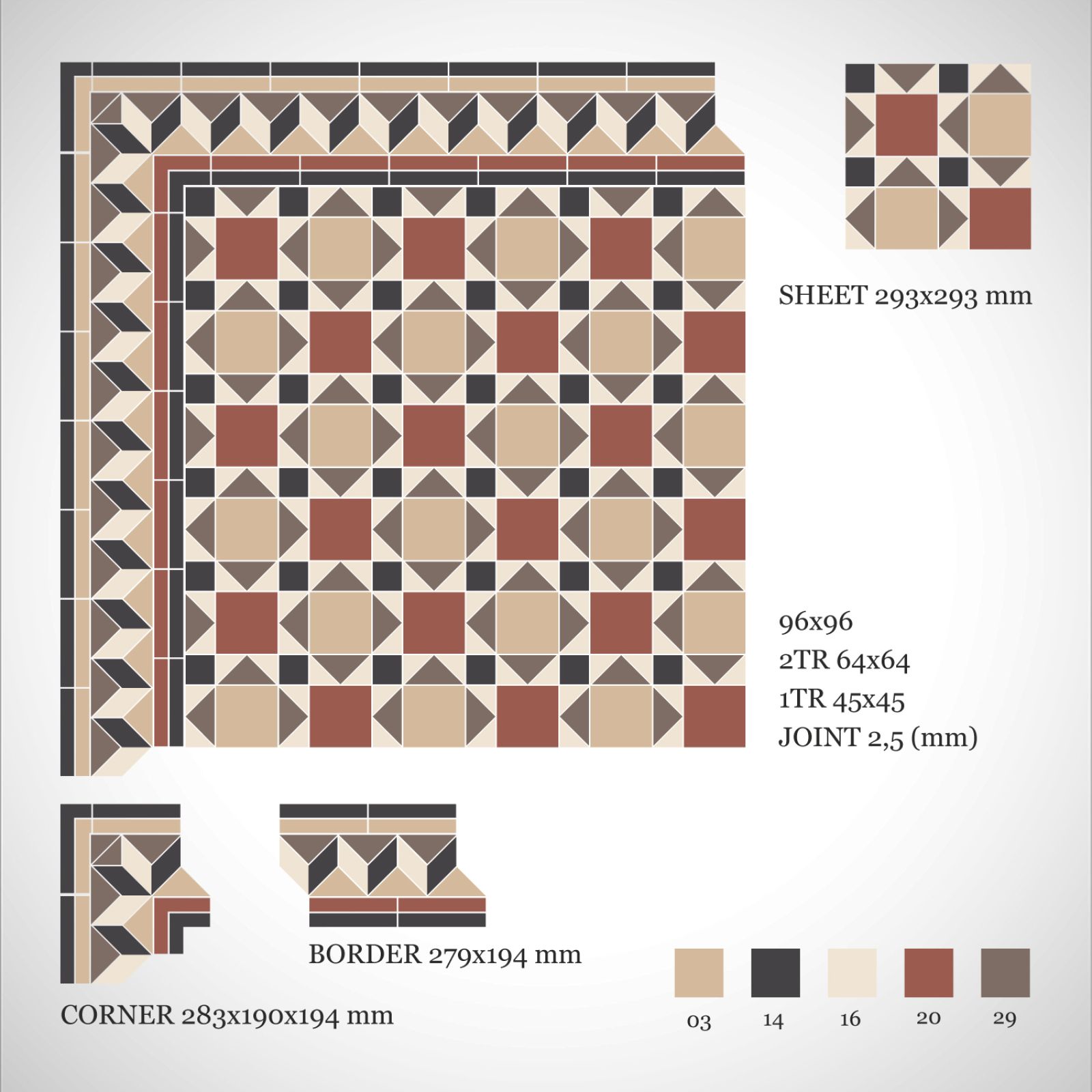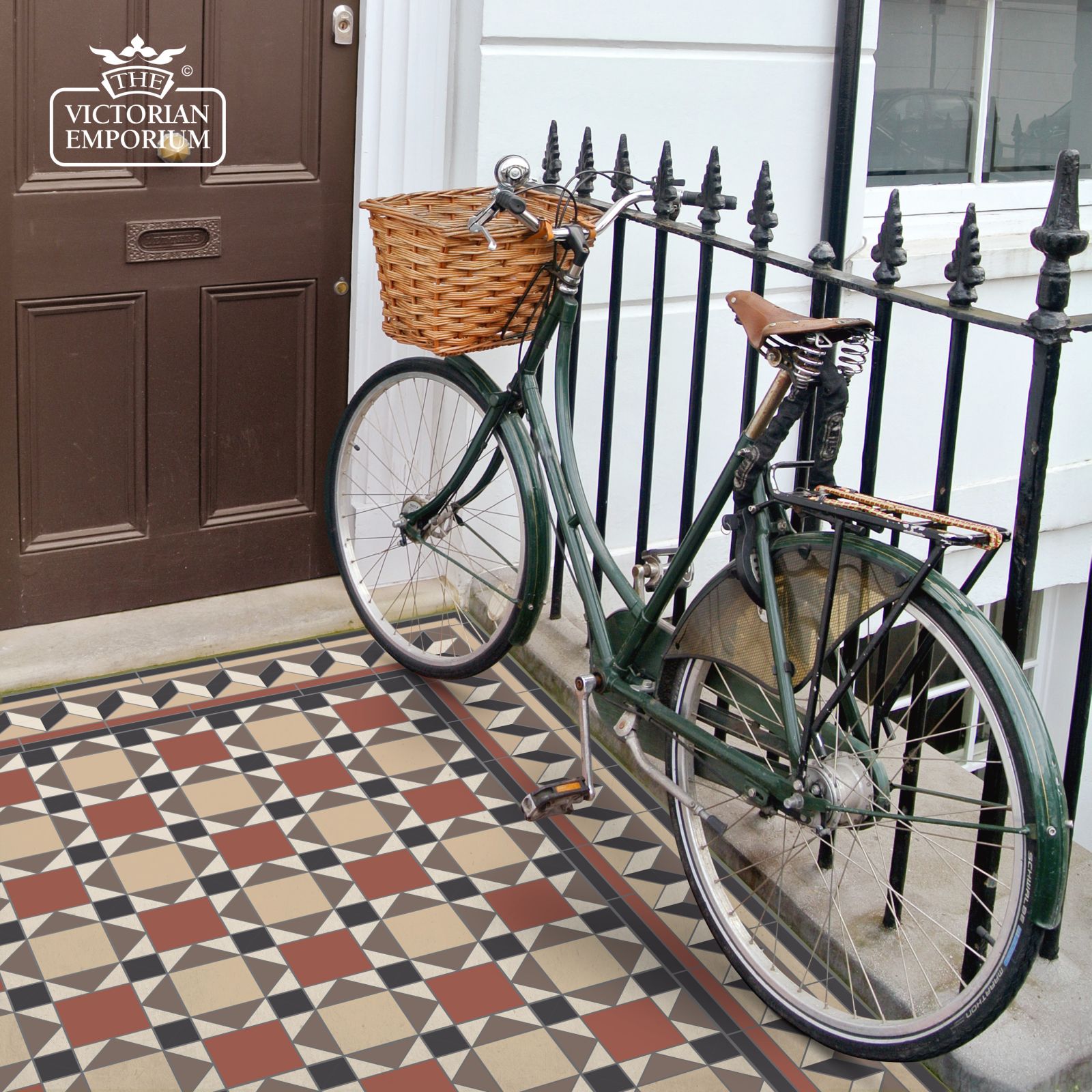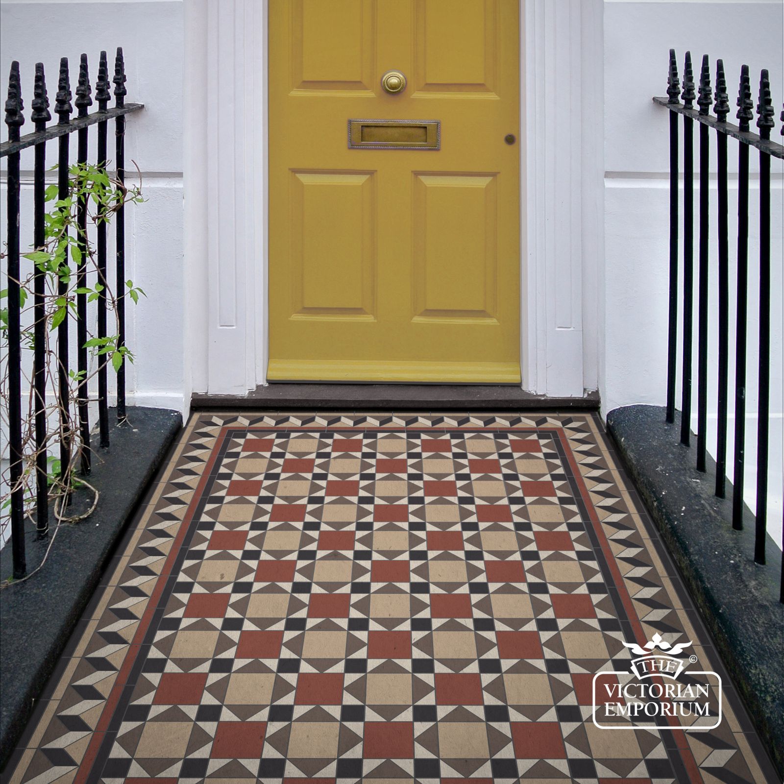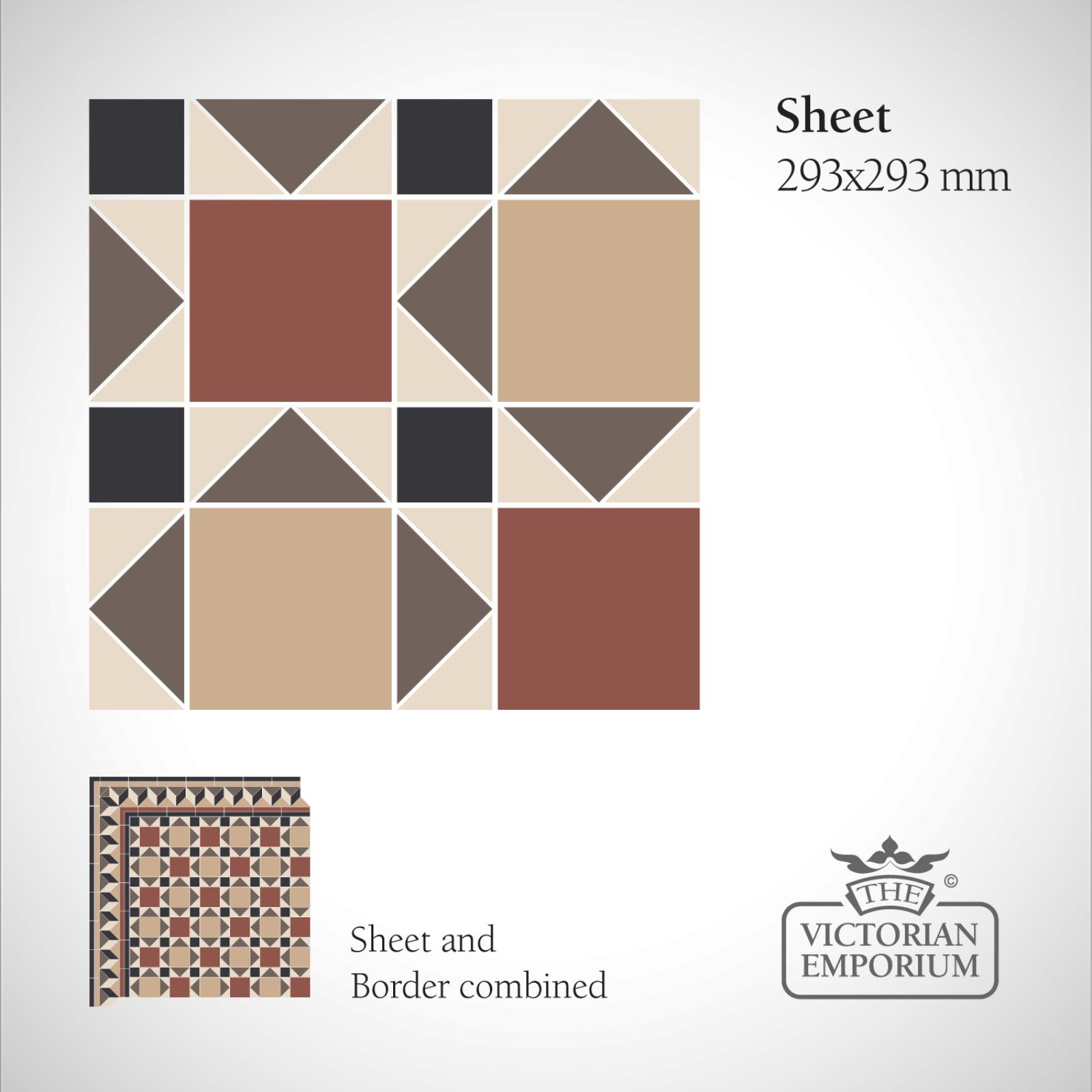 Victorian mosaic pattern tiles in Victorian colour pallet - sold by the sheet. Manchester pattern inset tiles design matches Manchester Border