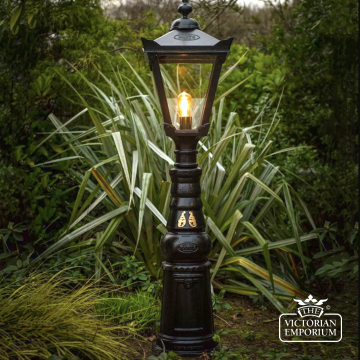 Beautiful cast iron pedestal topped with a traditional Galvanised steel and glass lantern with the flexibility of 2 size options.