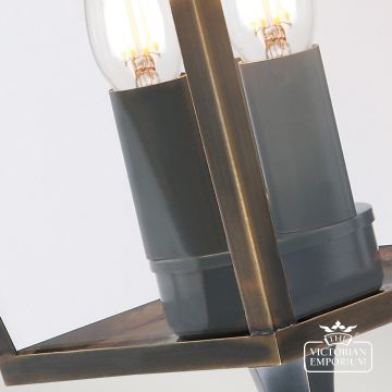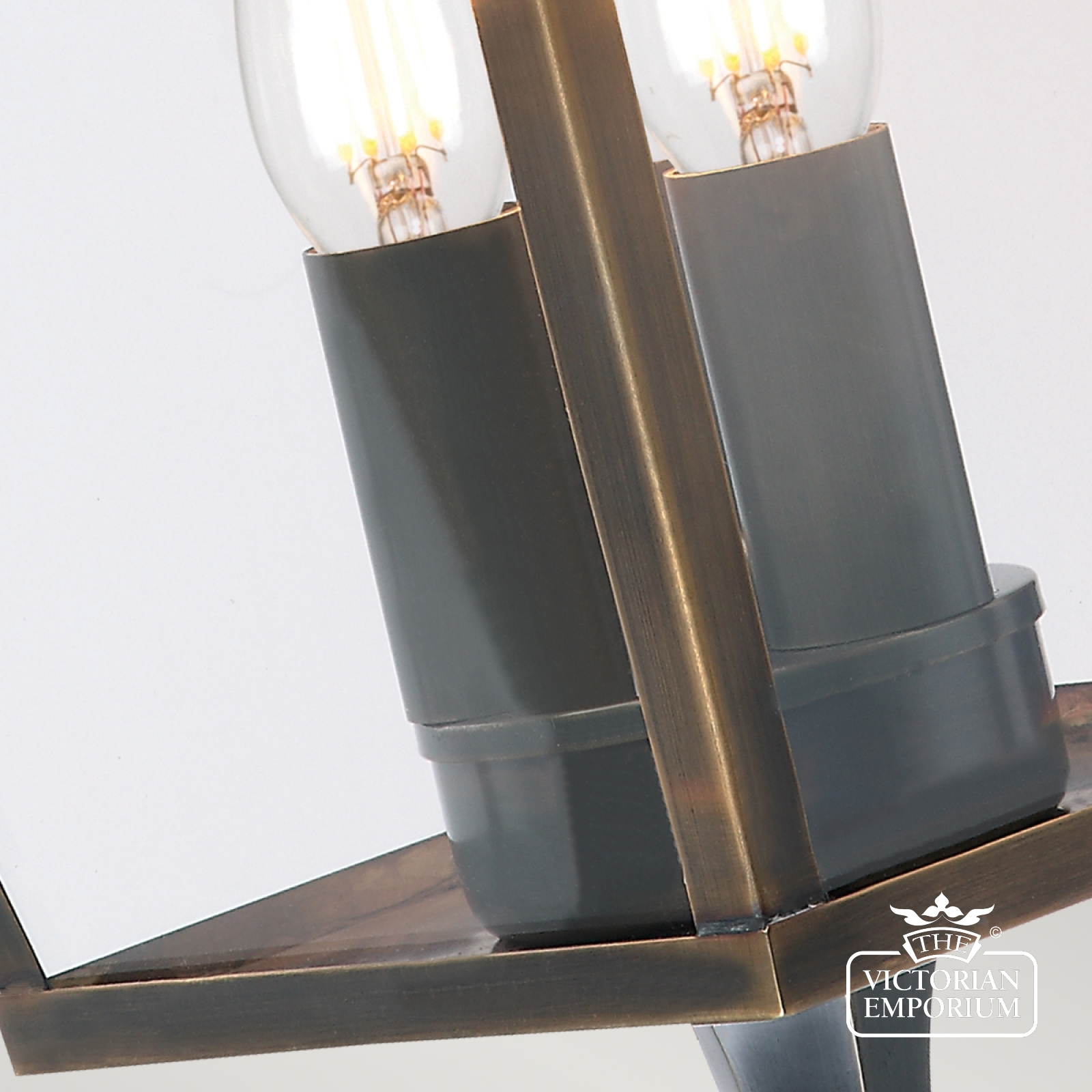 They are hand crafted and have an Aged Brass finish which is lacquered for durability. Models are all IP44 rated.